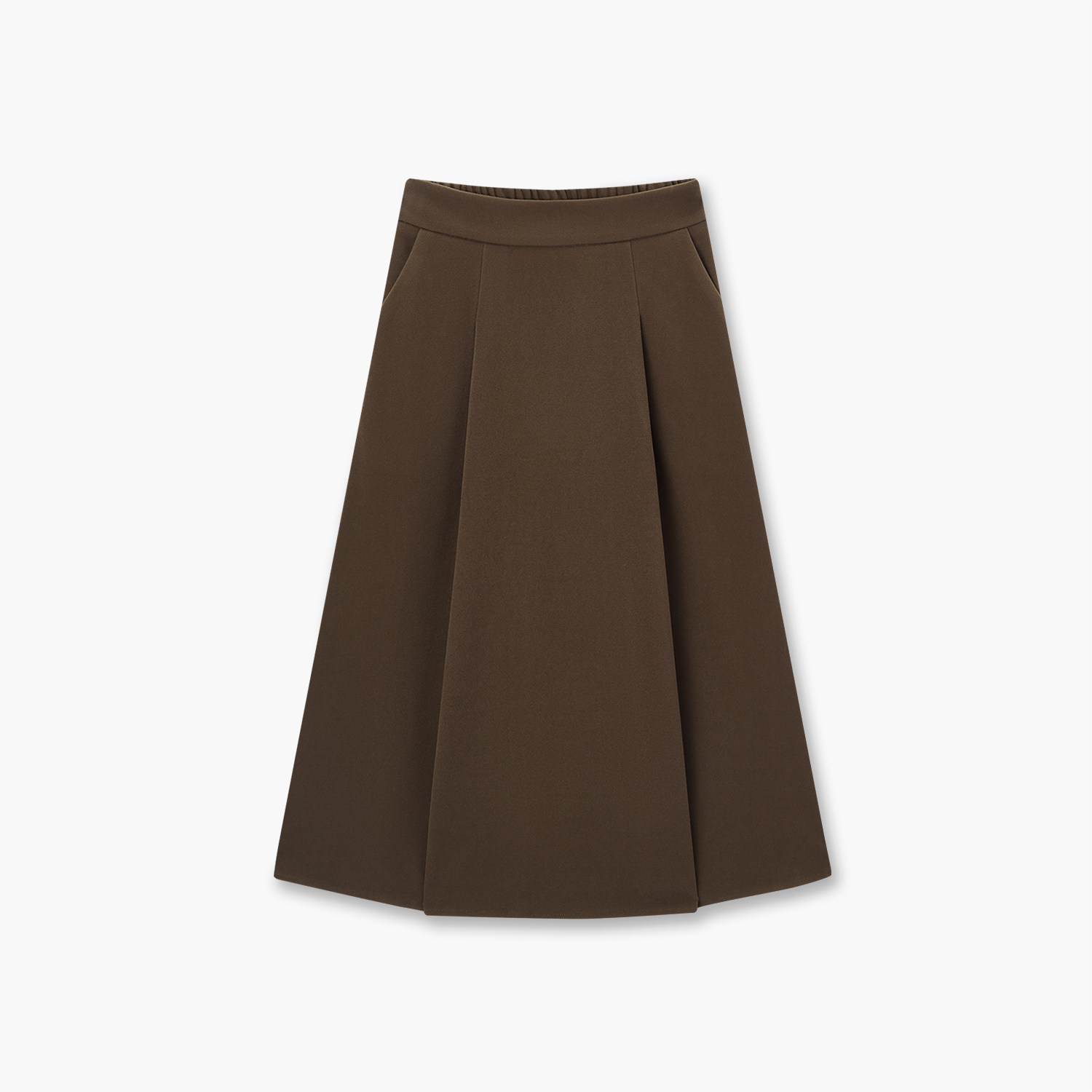 基础百搭的咖色伞裙,后腰松紧设计包容性强