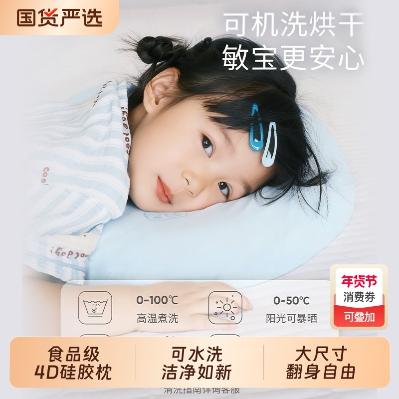 A类儿童枕头食品级硅胶枕宝宝婴儿可水洗枕芯四季用6月1岁3岁6岁+