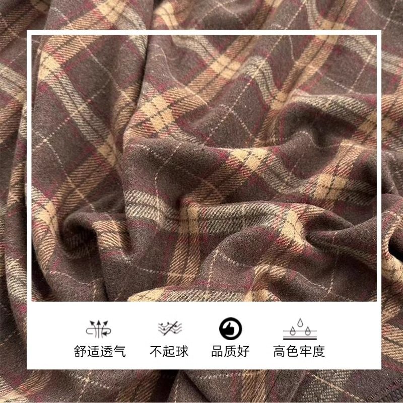 三福格子长裙女2025新款冬季气质流苏摆不规则半身裙子女装509092
