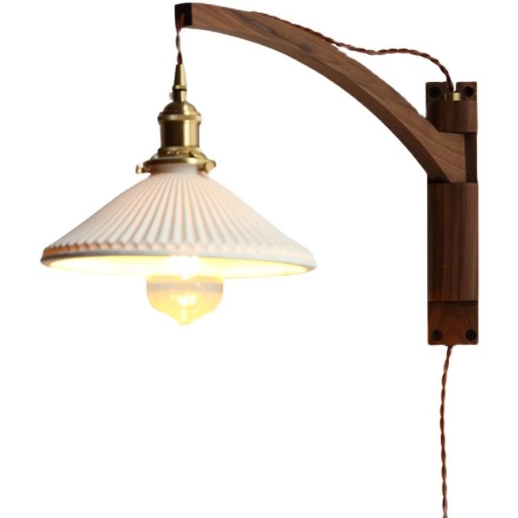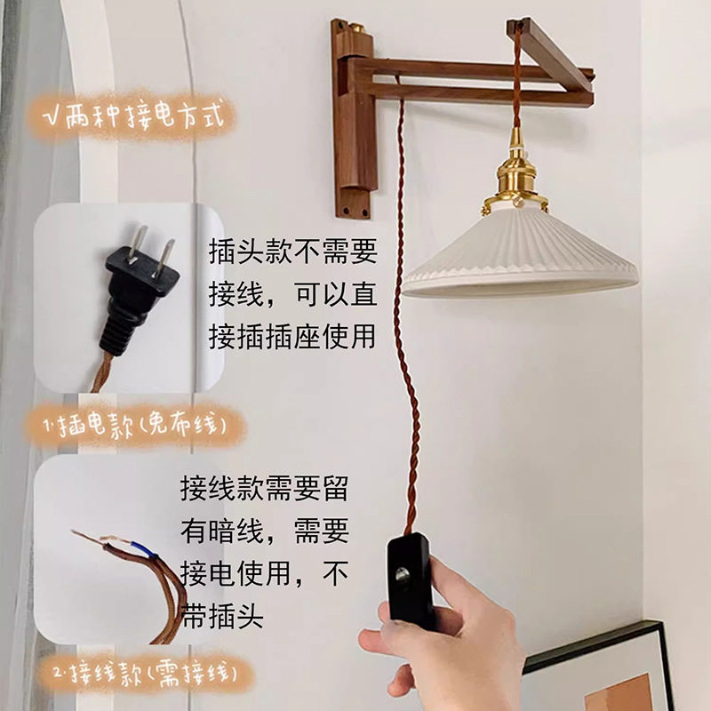 复古折叠胡桃木壁灯日式书房客厅卧室床头灯茶室民宿怀旧咖啡厅灯