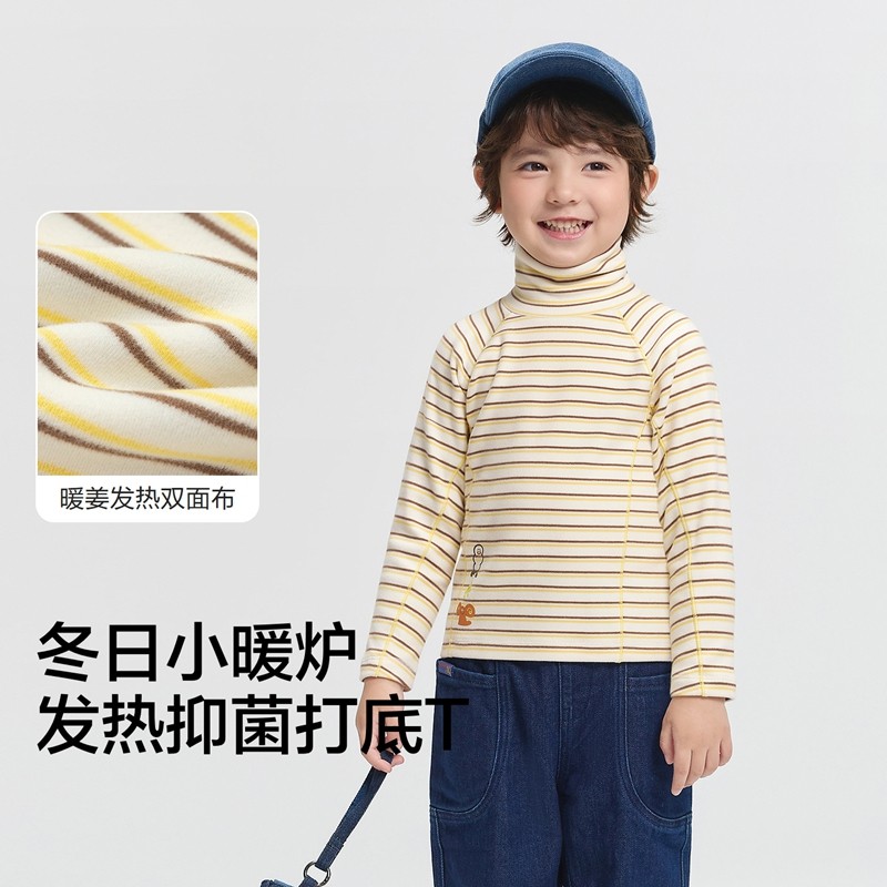 [发热]齐齐熊男童打底衫冬款宝宝条纹儿童半高领T恤童装女童纯色