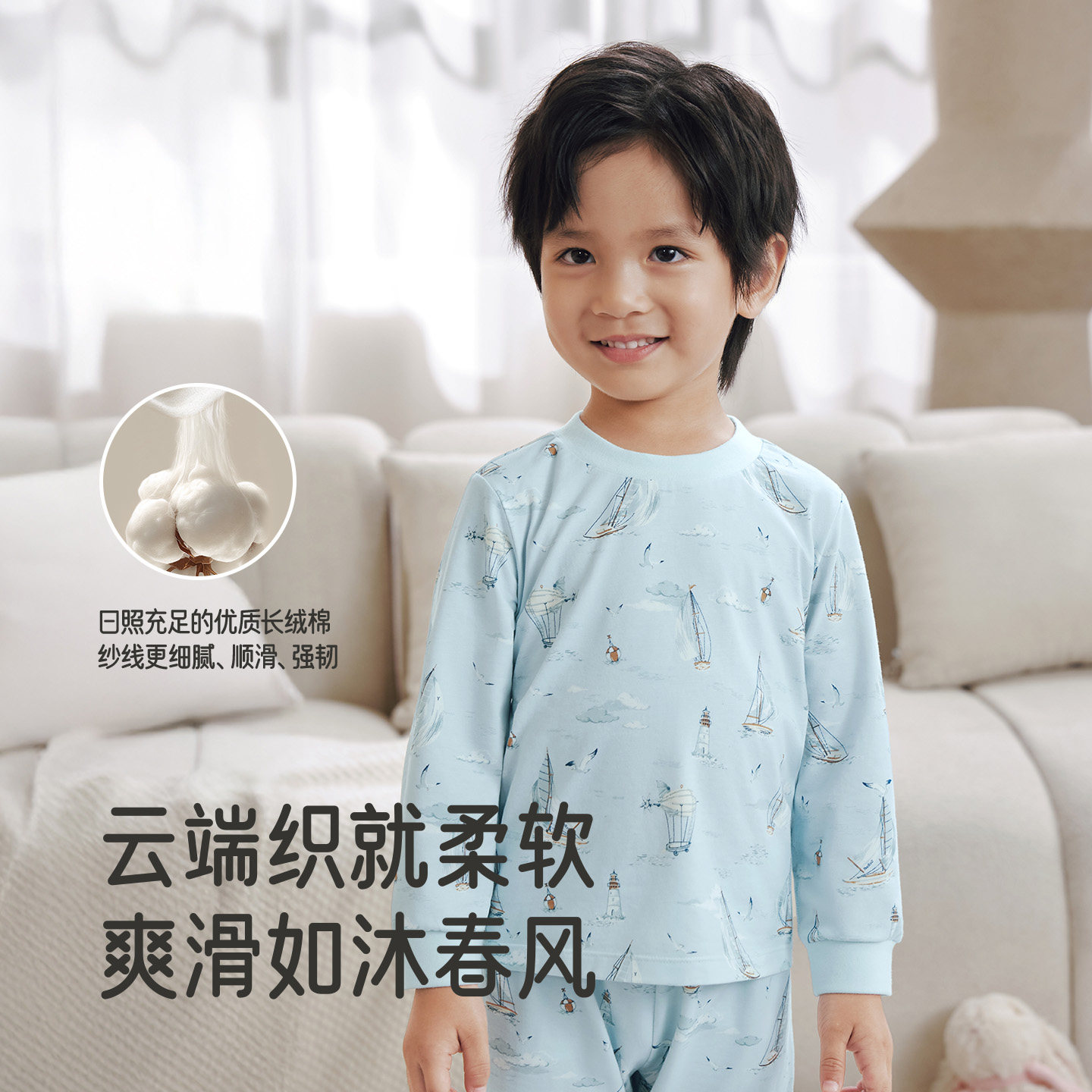 威尔贝鲁儿童睡衣春秋2025新款宝宝家居服竹棉纱布男童女童空调服