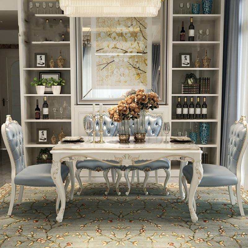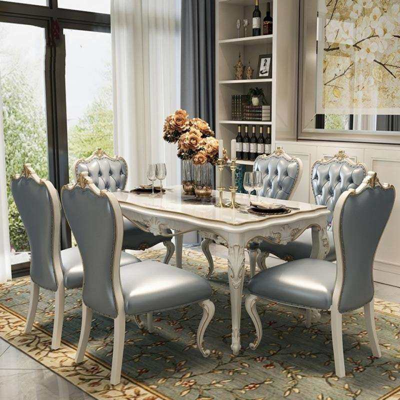 欧式简约餐桌长方形大理石刻餐桌椅组合轻奢美式连体餐桌椅组合