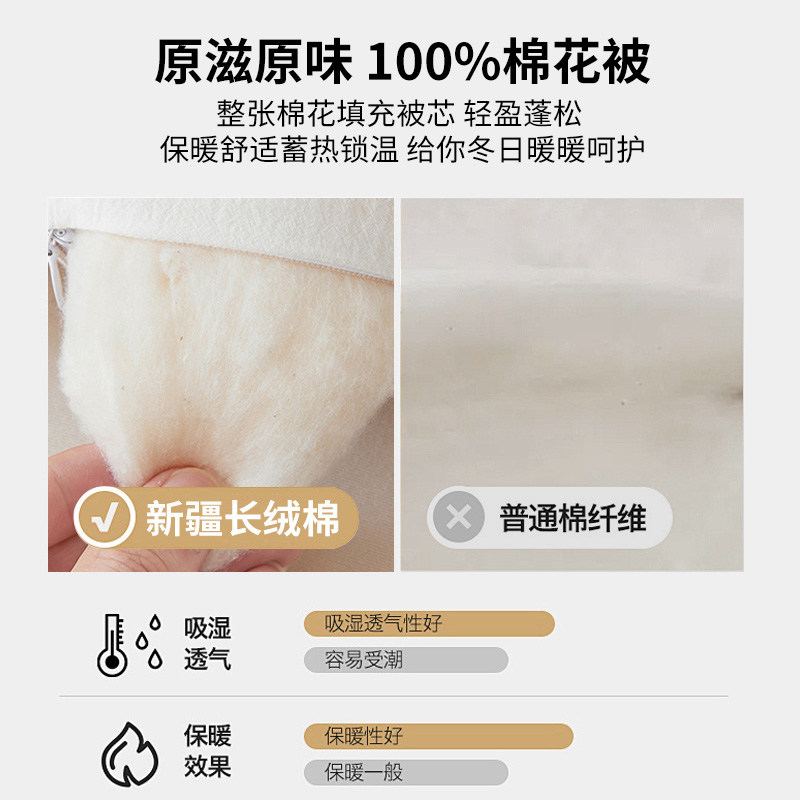 洁丽雅新疆棉花被子冬被冬季加厚保暖纯棉花被芯单人春秋棉絮棉被