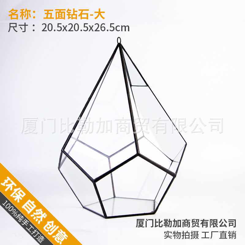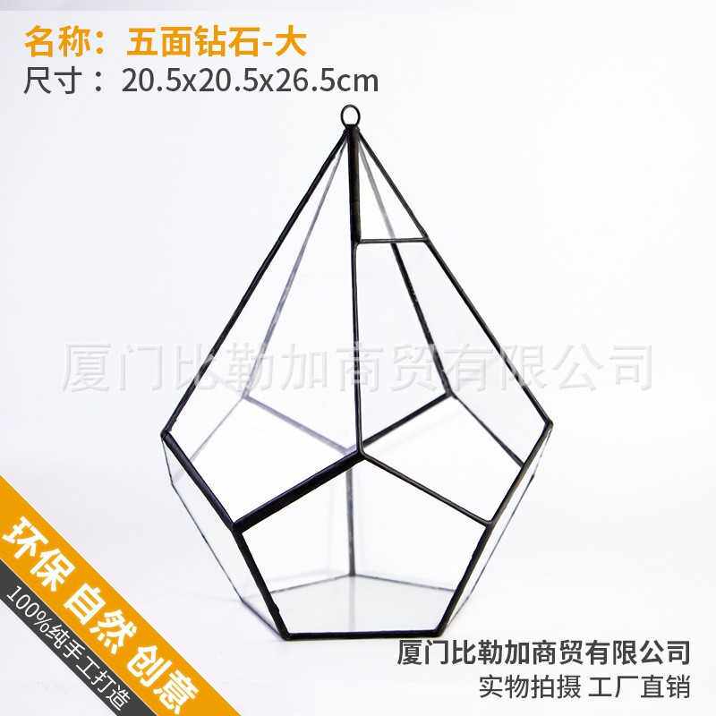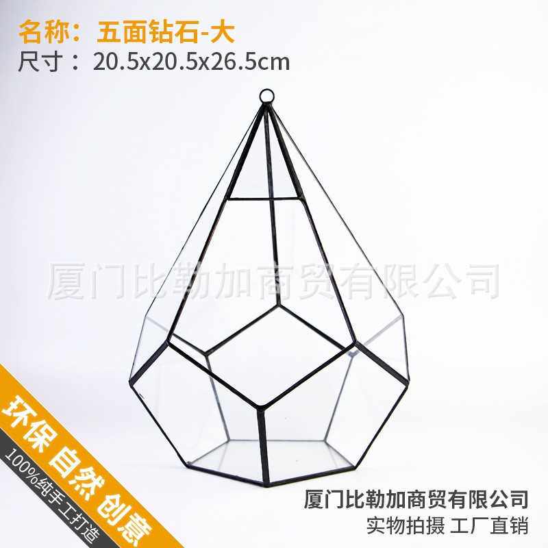 五面钻石大 多肉植物苔藓微景观不规则大玻璃永生小花房盒