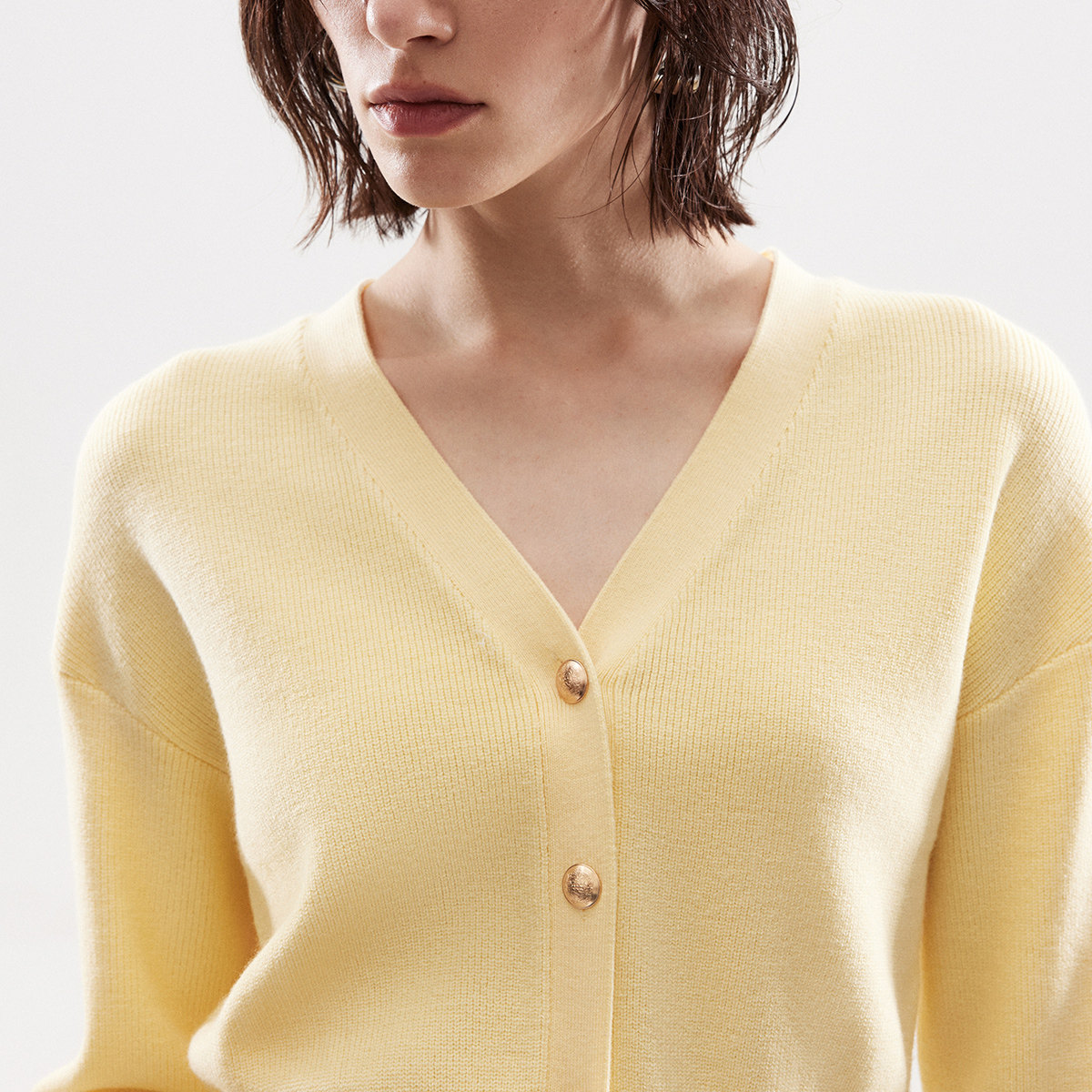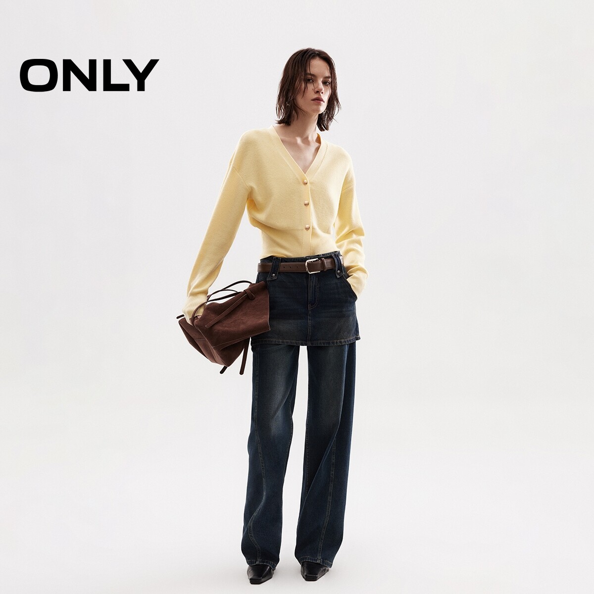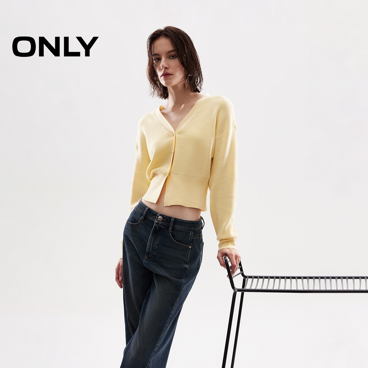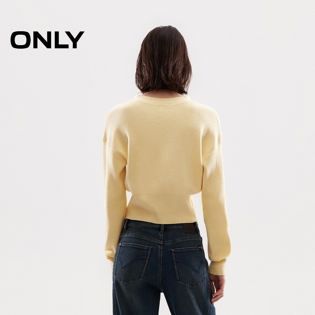 【ONLY奥莱】春季显瘦宽螺纹下摆V领短款宽松落肩开衫针织衫女