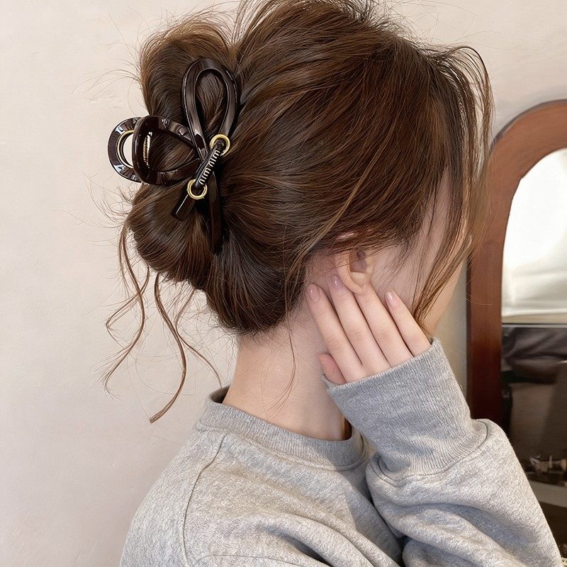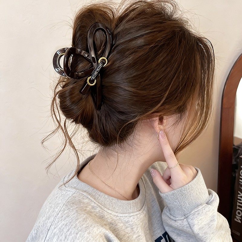 轻奢高级感字母水滴发夹女2025新款小众设计盘发抓夹气质鲨鱼夹子