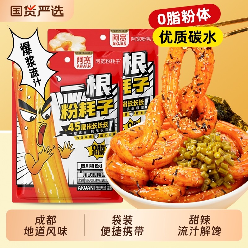 阿宽一根粉耗子干拌土豆粉网红美食小吃方便速食解馋宽粉袋装甜辣