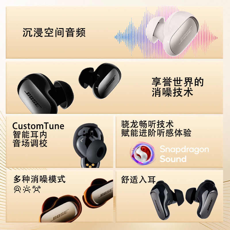 BOSE QC消噪耳塞Ultra 真无线蓝牙主动降噪耳机空间音频大鲨3代