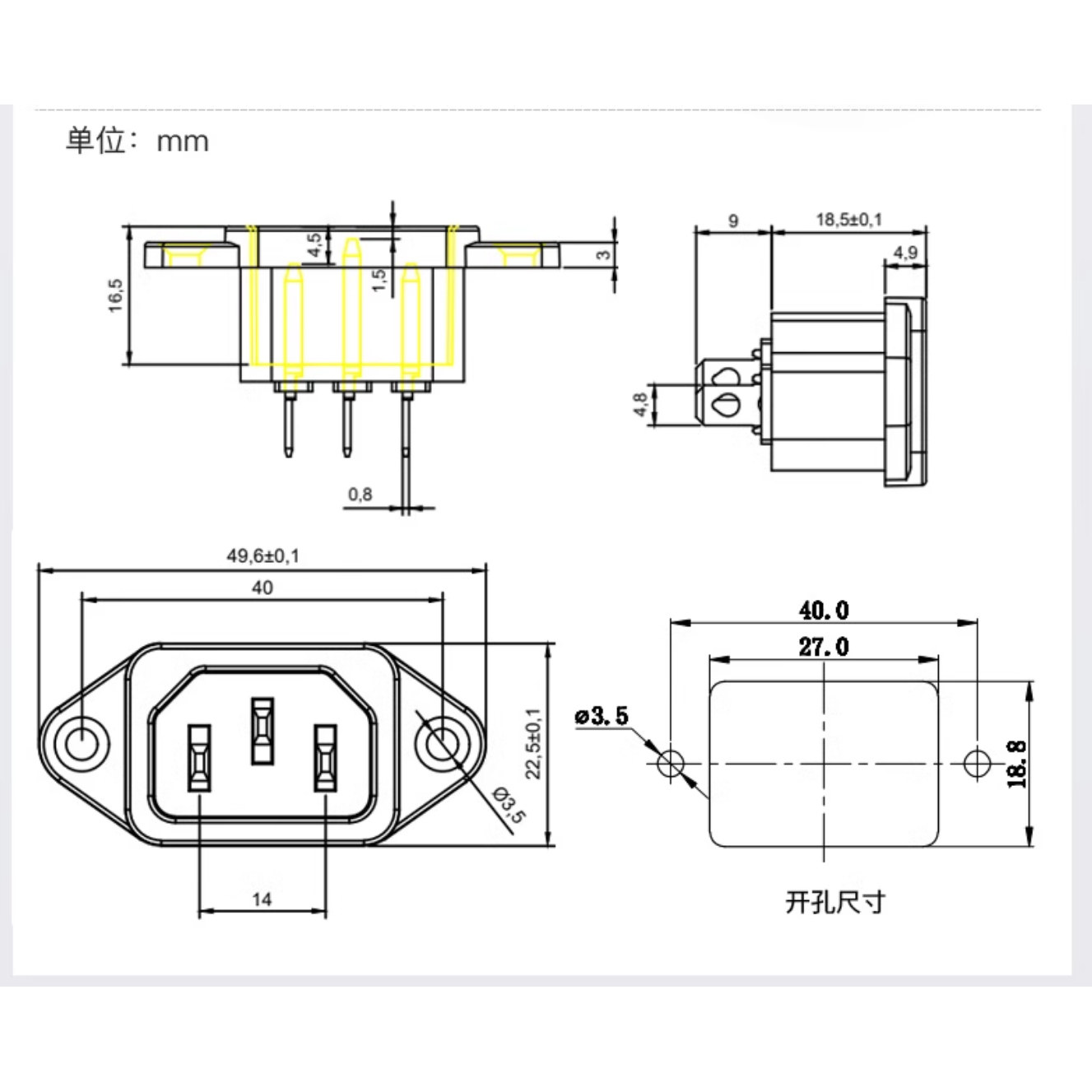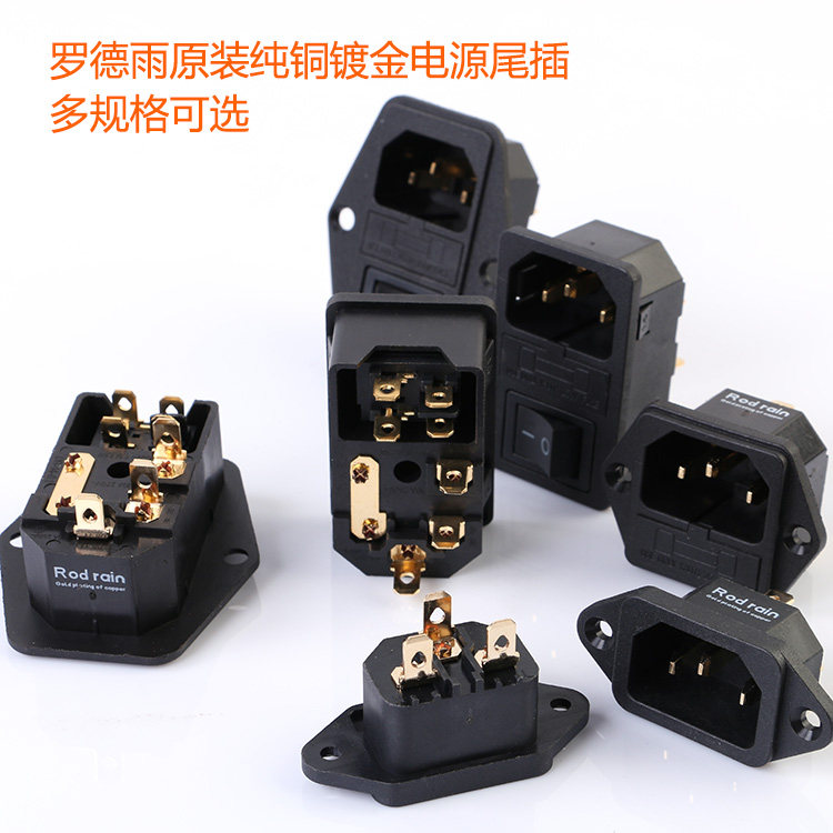 罗德雨hifi发烧4N紫铜镀金机尾座功放音响AC 电源插尾座品字插座