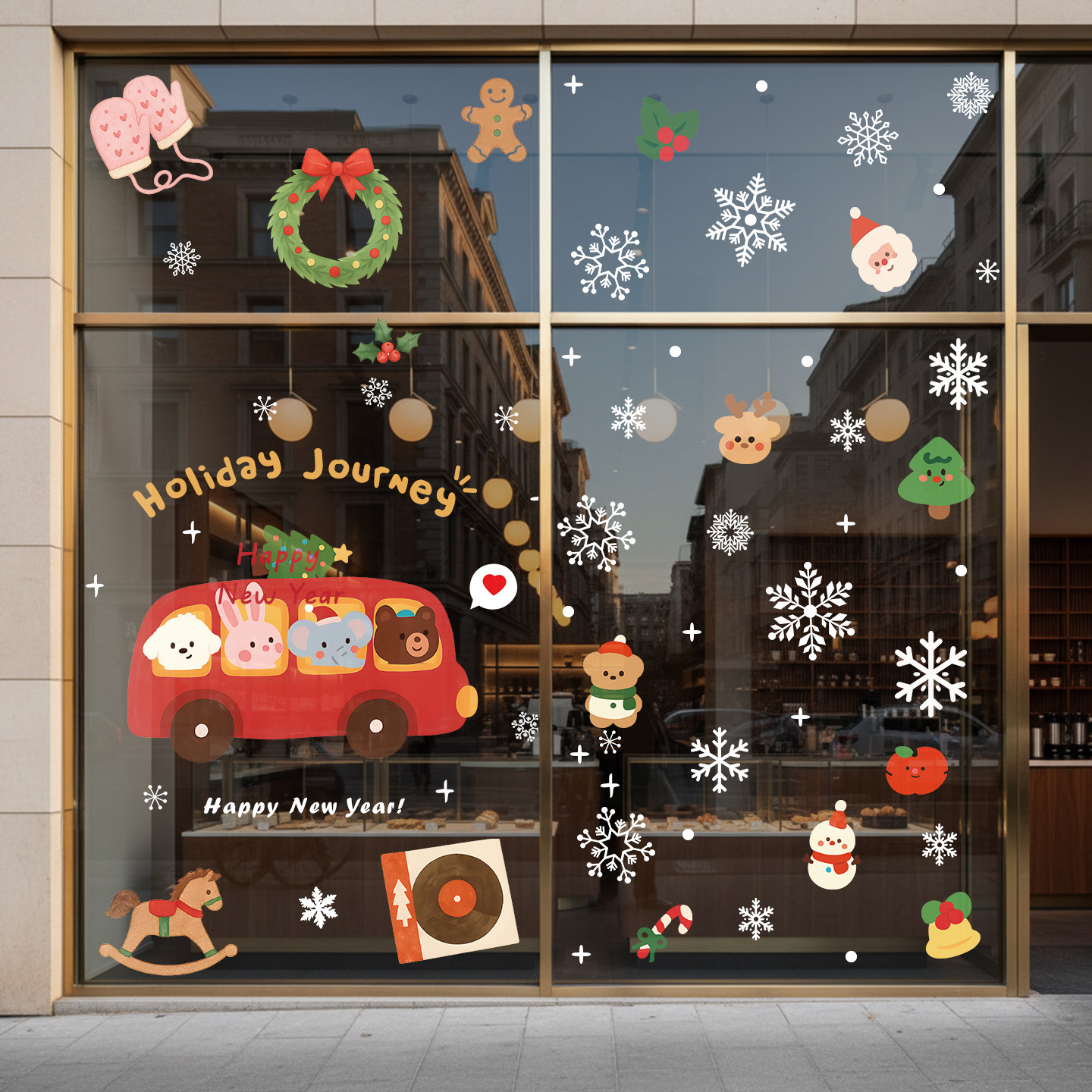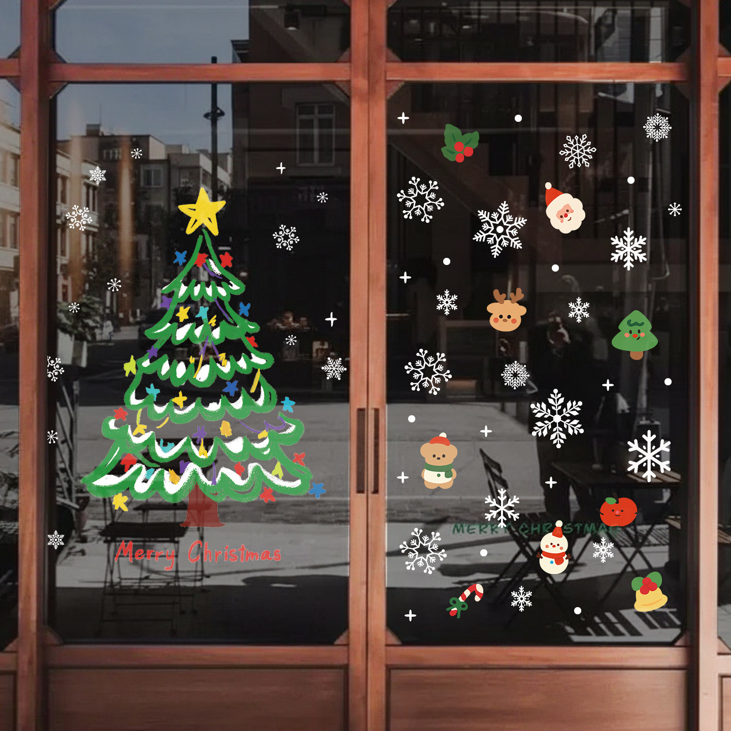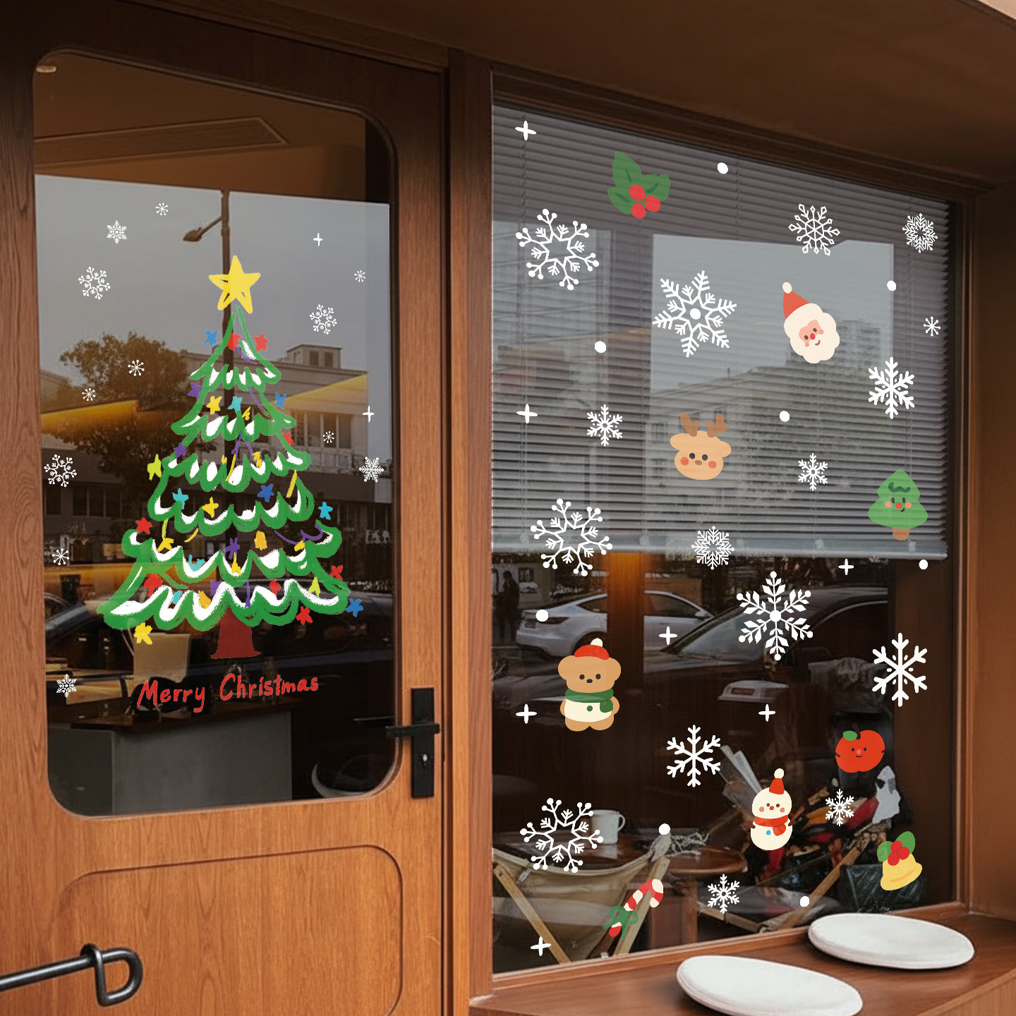 圣诞节装饰品橱窗场景布置玻璃门贴纸2026静电窗贴挂件圣诞老人树