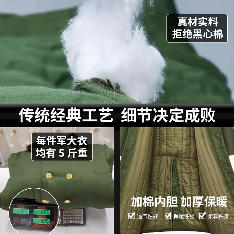 新款军大大衣男款冬季加厚加长女迷彩防寒棉服东北老式军棉绿大衣