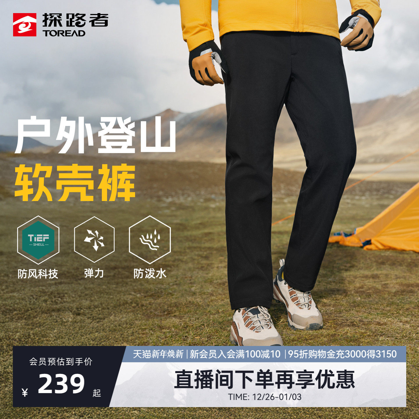 探路者2025新款男士户外运动轻量吸汗透气速干软壳裤商务通勤长裤