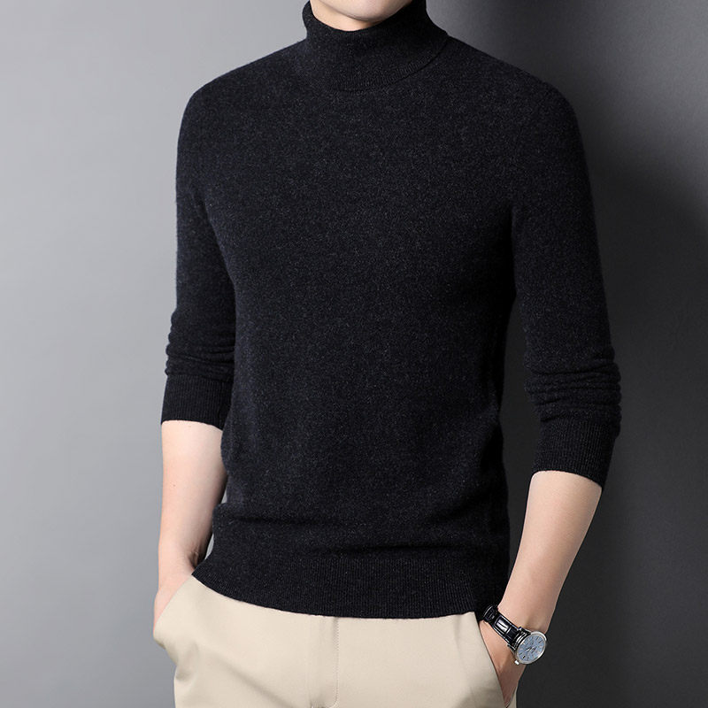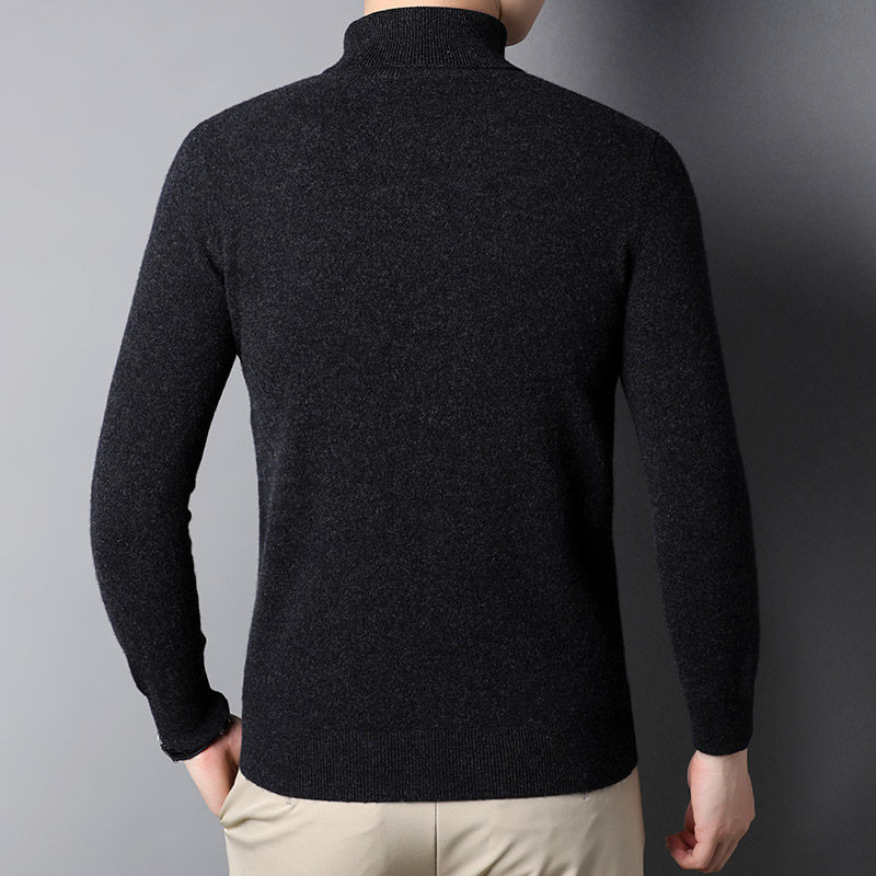鄂尔多斯市半高领100%纯羊毛衫男休闲中厚保暖毛衣针织打底羊绒衫