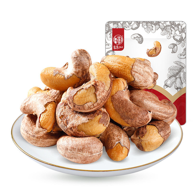 华味亨带衣/原味腰果250g大颗粒休闲零食紫衣腰果紫皮新货果仁