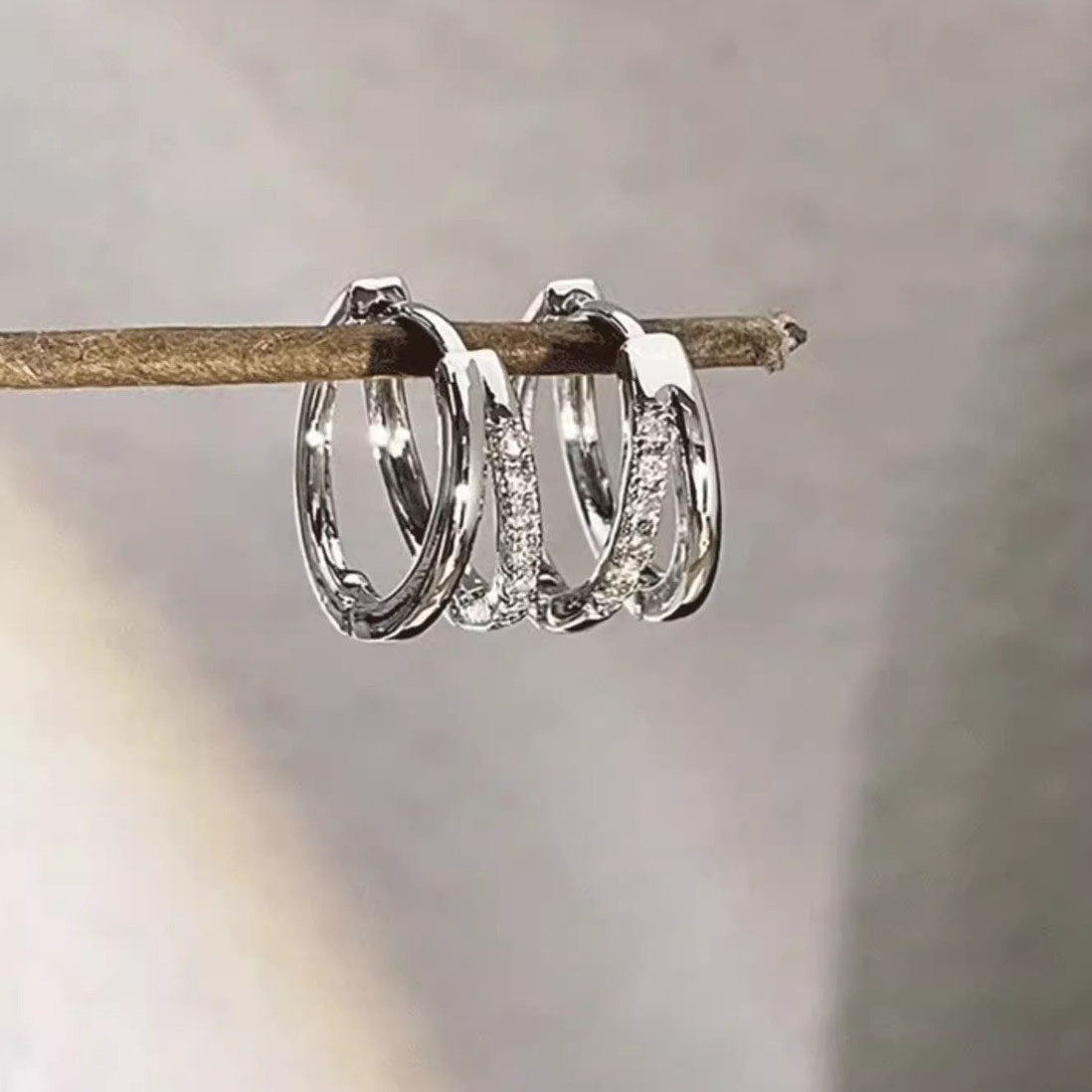 925银针双层圈圈耳环女小众气质高级感素圈耳饰2025新款爆款耳钉