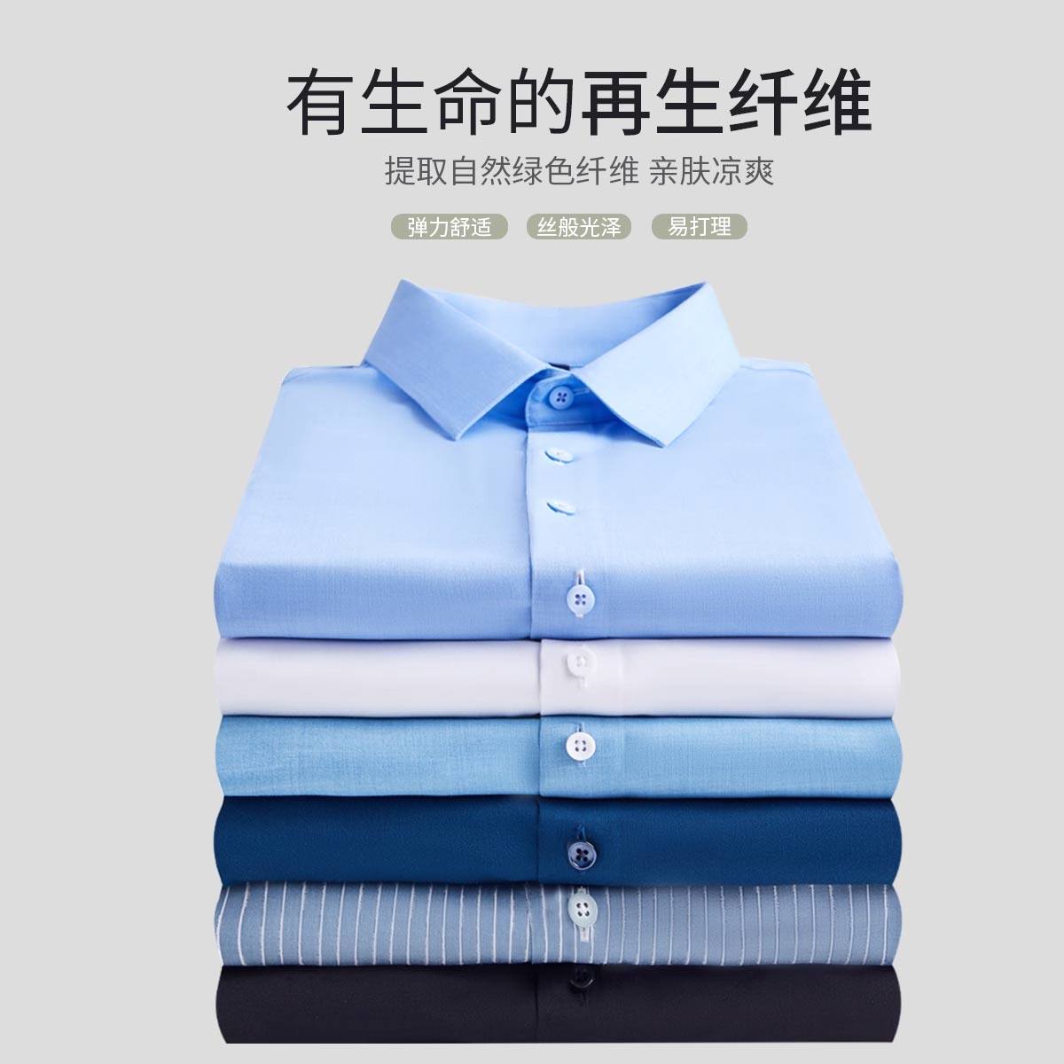 【云感衬衫】金利来春夏新款莫代尔弹力抗皱男士商务长袖白色衬衣