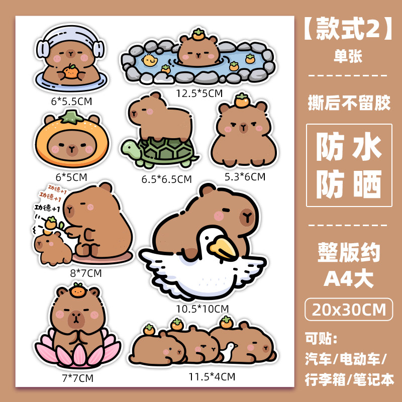 卡皮巴拉行李箱贴纸防水不留胶卡通可爱笔记本电脑拉杆箱装饰贴纸
