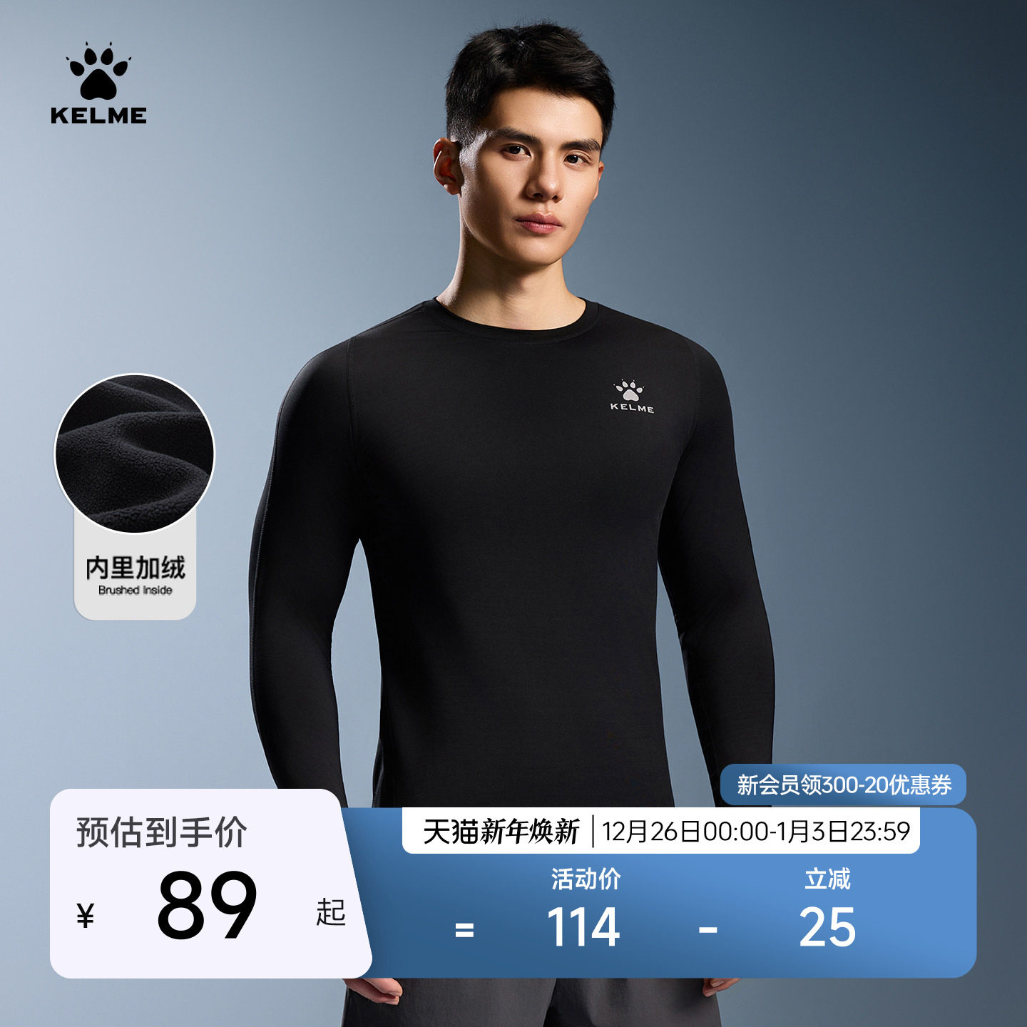 KELME卡尔美 紧身衣男拇指扣加绒 运动健身服T恤足球训练儿童打底