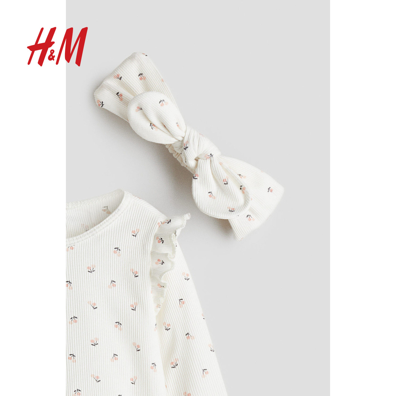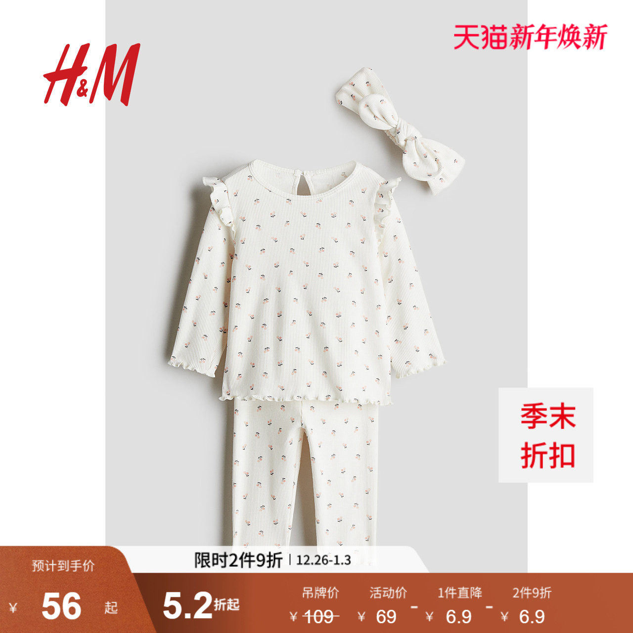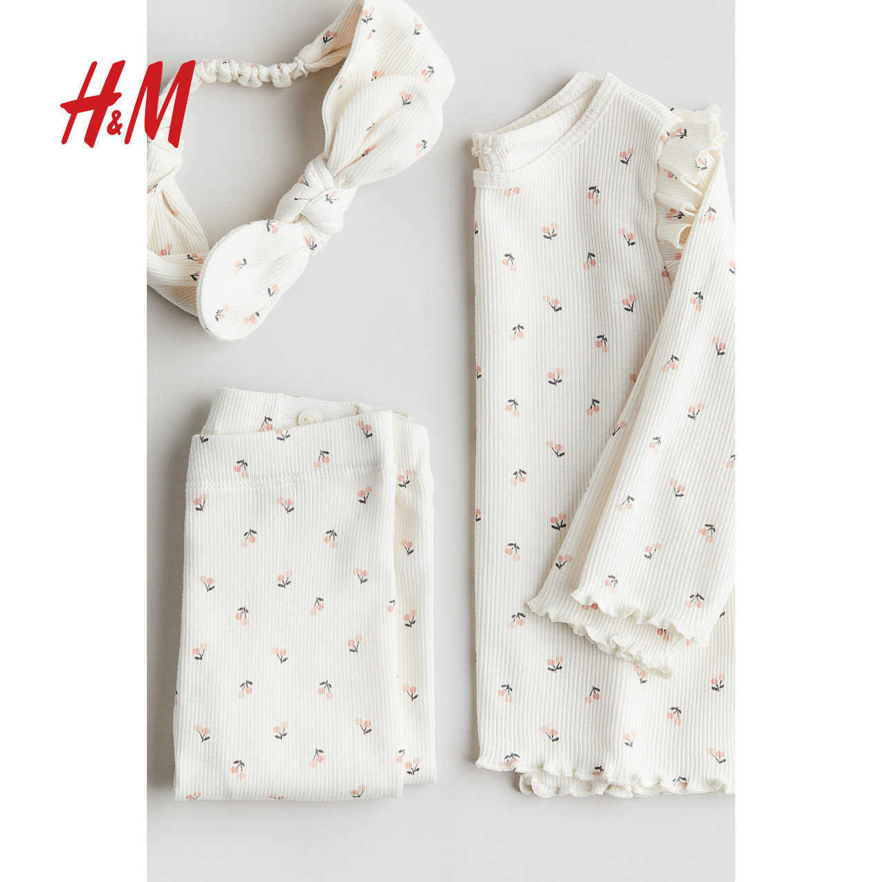 HM童装女婴套装3件式冬季舒适柔软罗纹棉质套装1236894