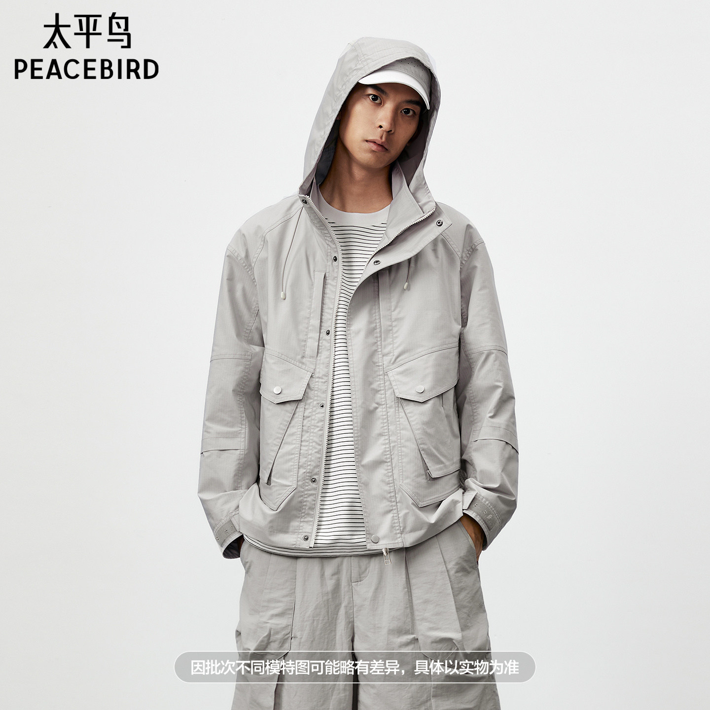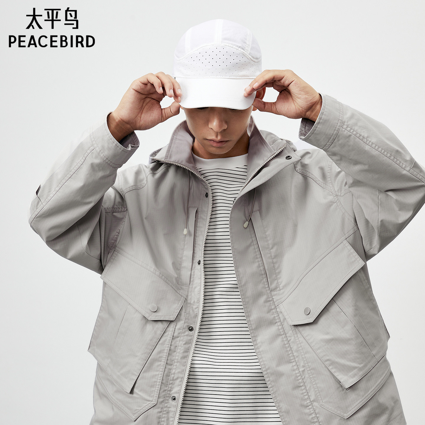 太平鸟男装 休闲夹克男士时尚舒适秋季工装潮流经典连帽夹克上衣