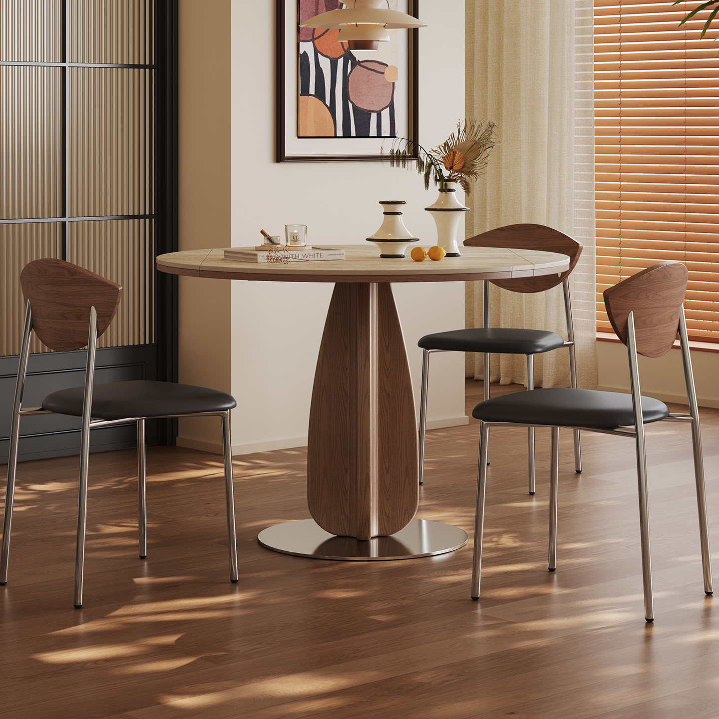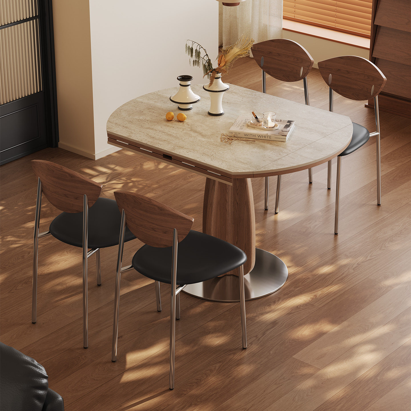 折叠岩板餐桌可变圆桌小户型设计师新款中古风洞石岩板实木餐桌