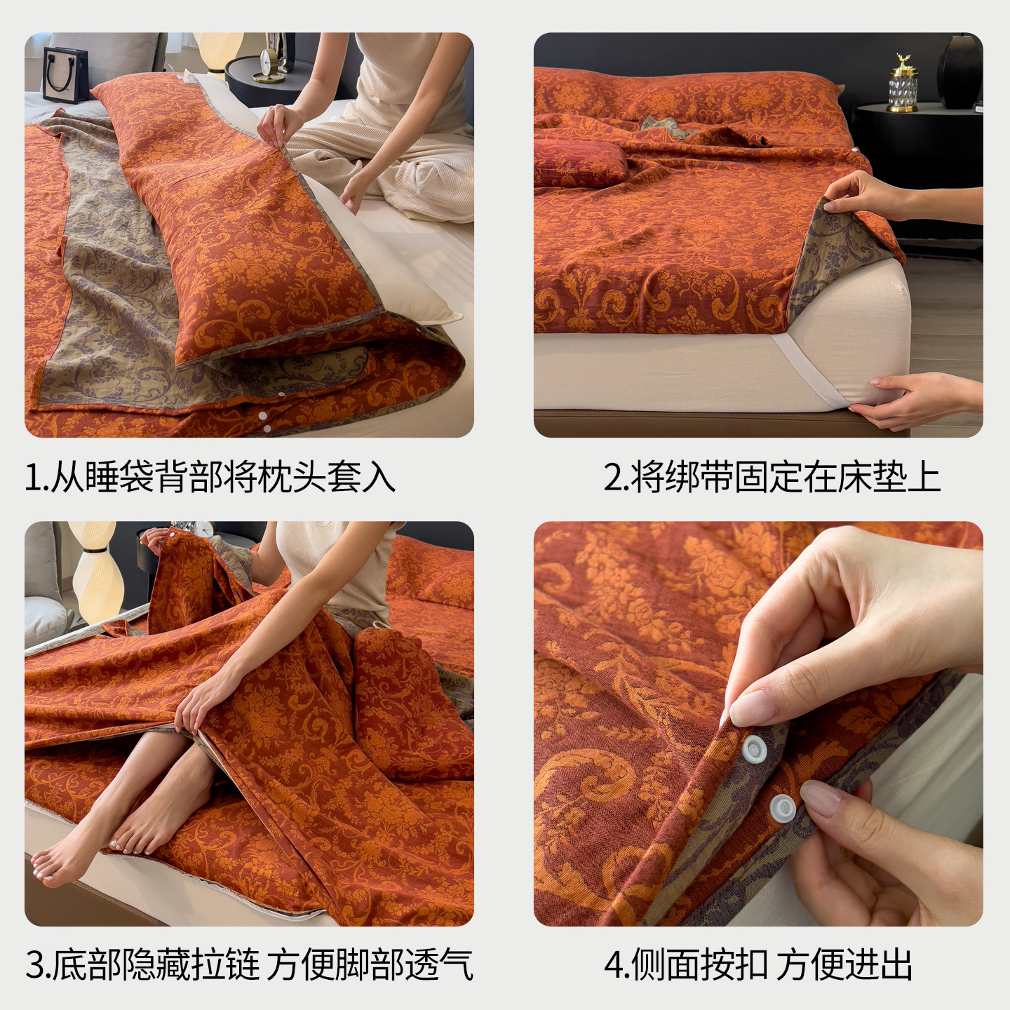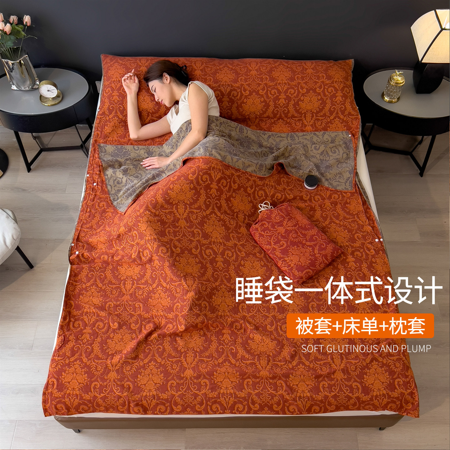 如奕A类全棉双层纱布隔脏睡袋便携式酒店旅行出差床单被套三件套