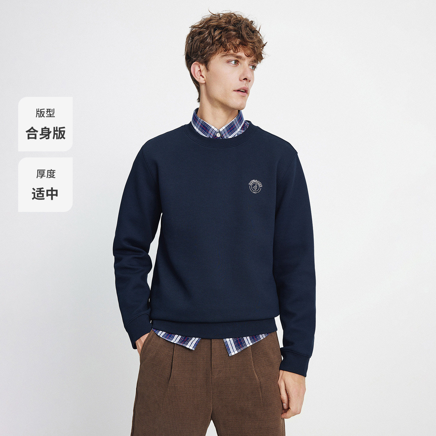 Navigare意大利小帆船圆领卫衣男士春秋季新款休闲套头长袖T恤