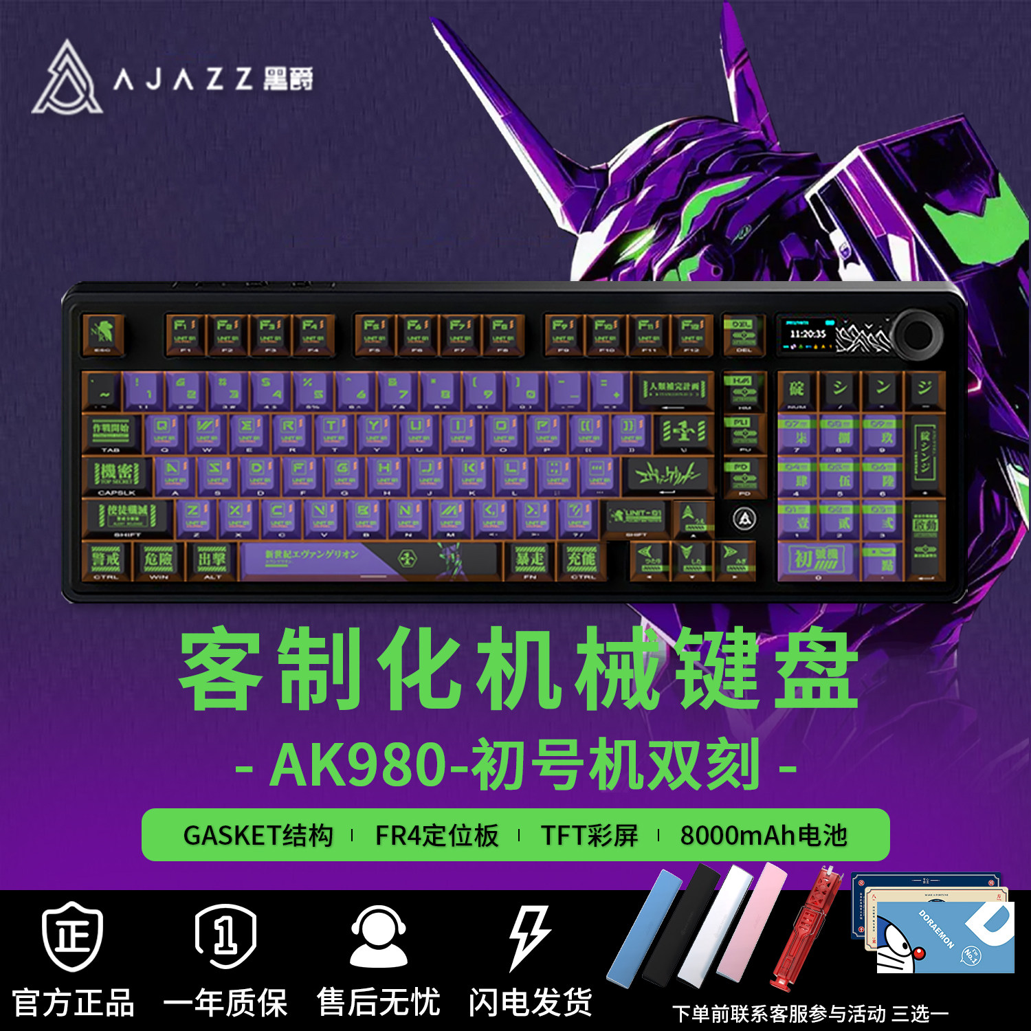 黑爵AK980初号机电竞游戏机械键盘EVA联名无线套件可爱女生热插拔