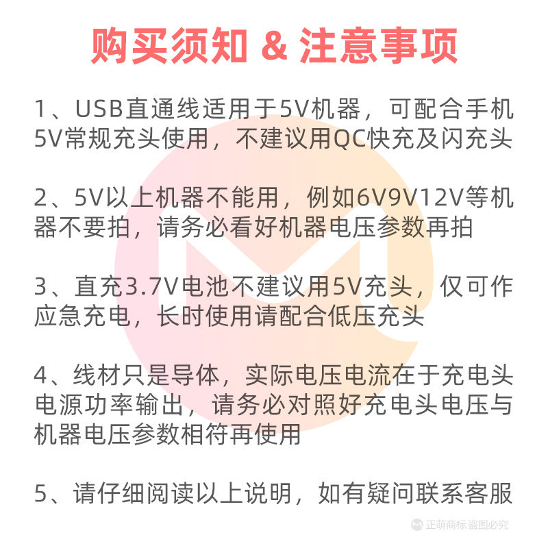 通用5V圆孔USB线儿童手拍鼓充电线电子琴钓鱼灯旋转木马猴子