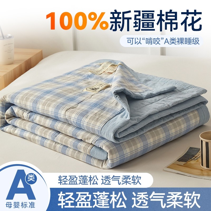 2025新款空调被夏凉被全棉纯棉薄被子可机洗四季通用新疆棉花夏被