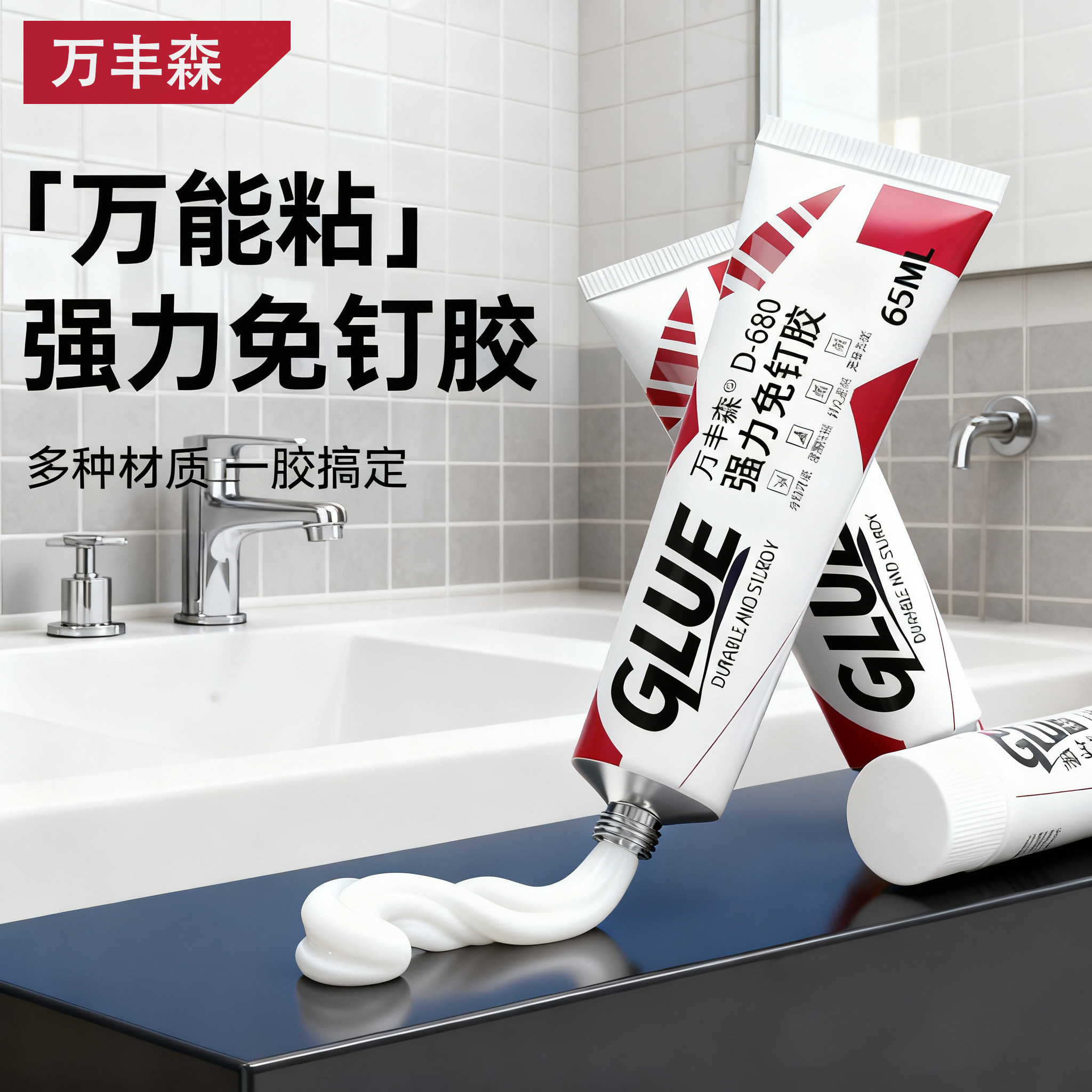 强力免钉胶粘墙面金属玻璃瓷砖踢脚线置物架镜子速干结构代钉胶水