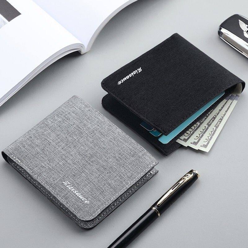 帆布钱包男短款学生年轻人潮款超薄个性皮夹简约可放驾驶证多卡位