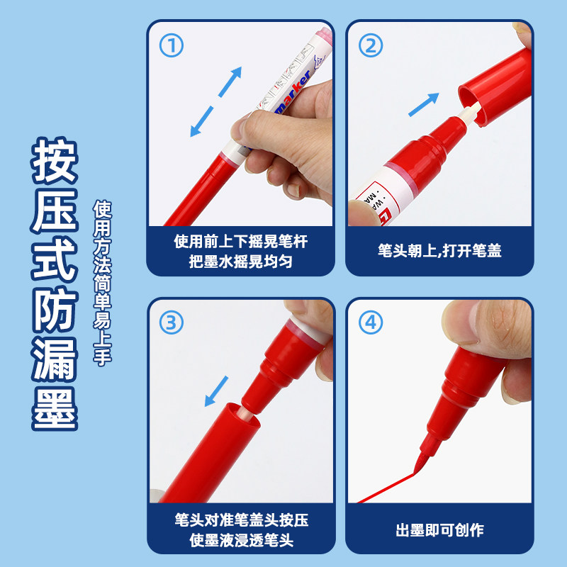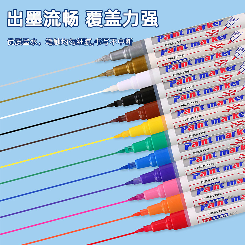 软头油漆笔红色工业不掉色防水白色轮胎笔汽车补漆笔黑色描胎发动机螺丝标记笔绿色石碑笔墓碑文补色上色描金