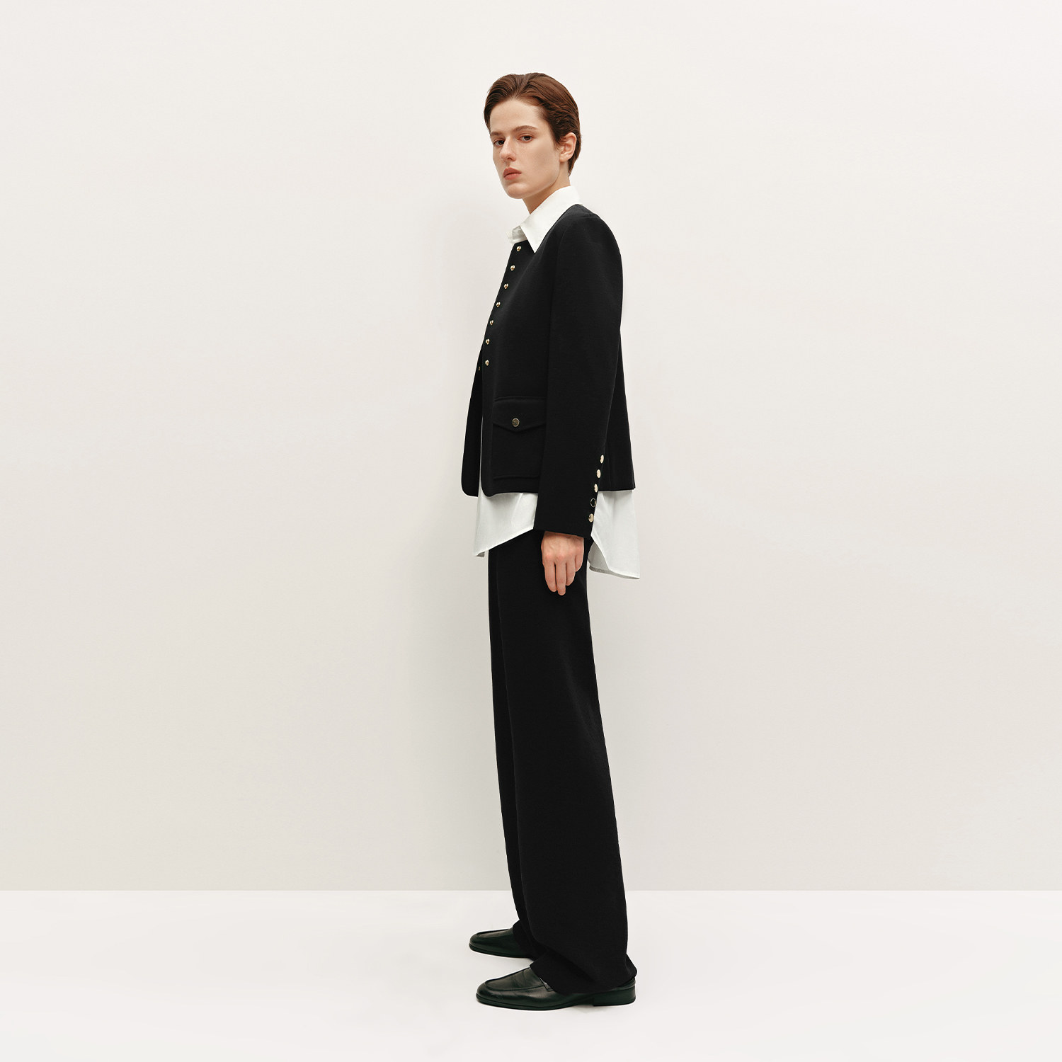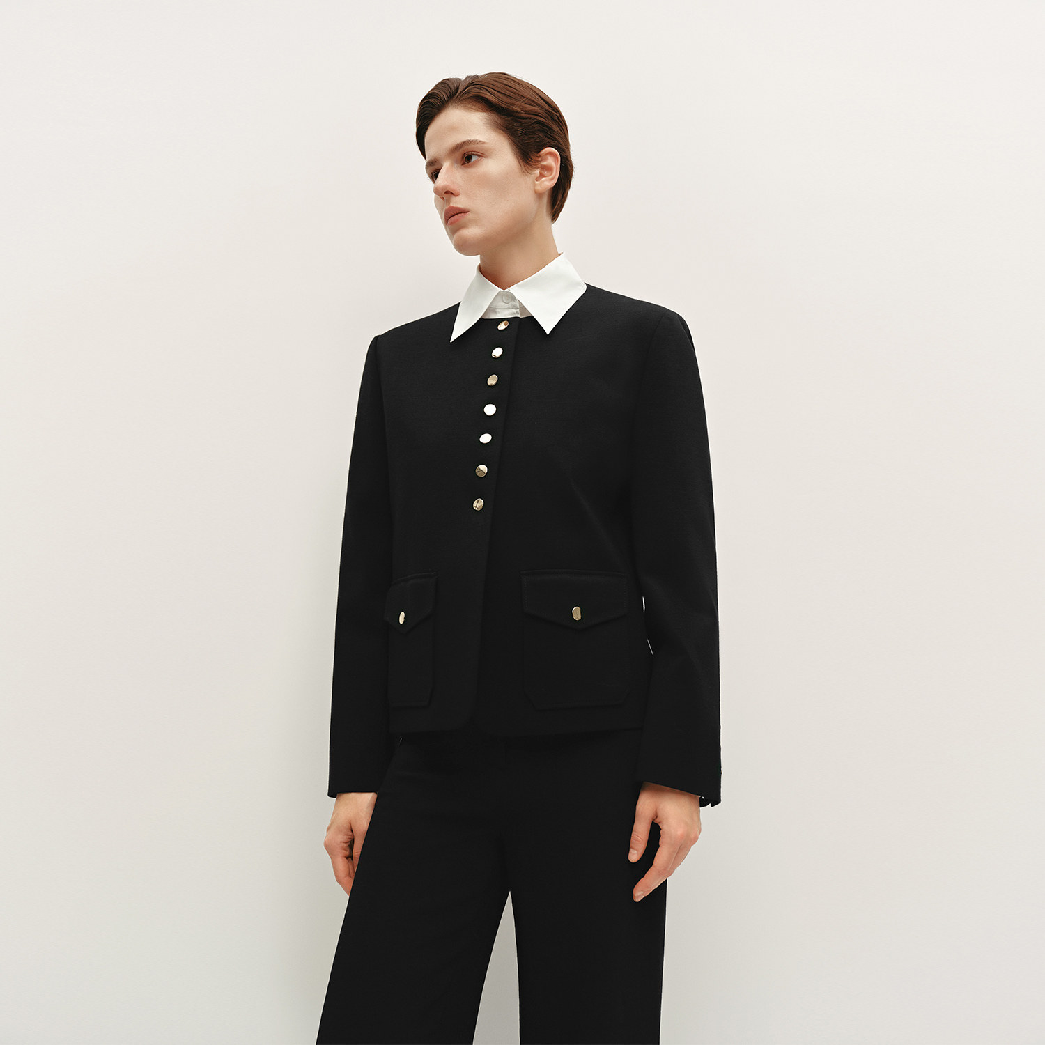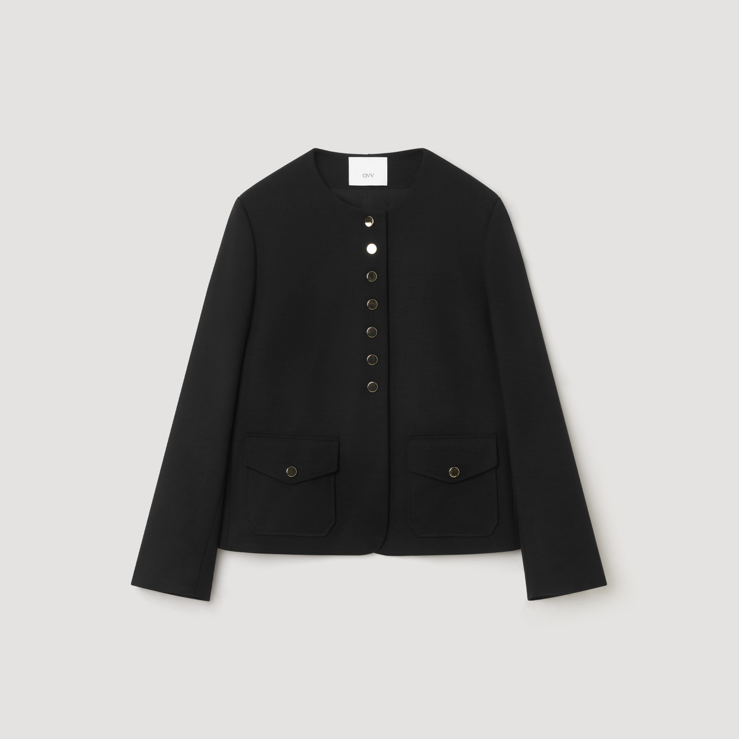 OVV秋冬热卖女装经典黑金圆领针织羊毛夹克休闲外套
