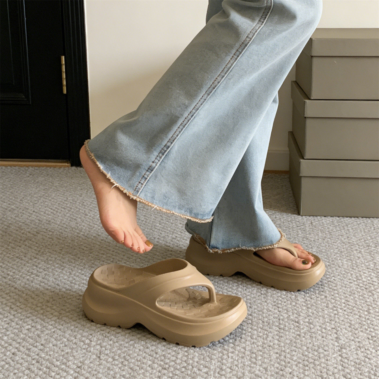 细细条 时尚增高厚底足弓人字拖女网红夏天防滑沙滩度假夹脚凉拖