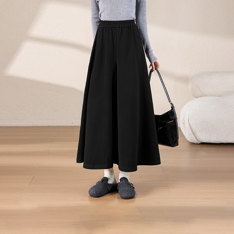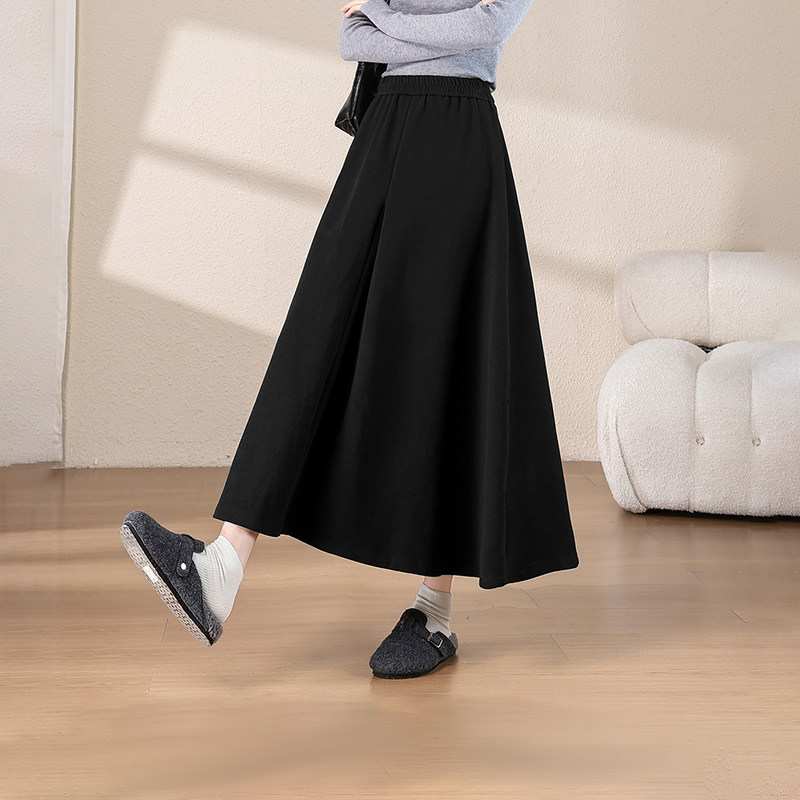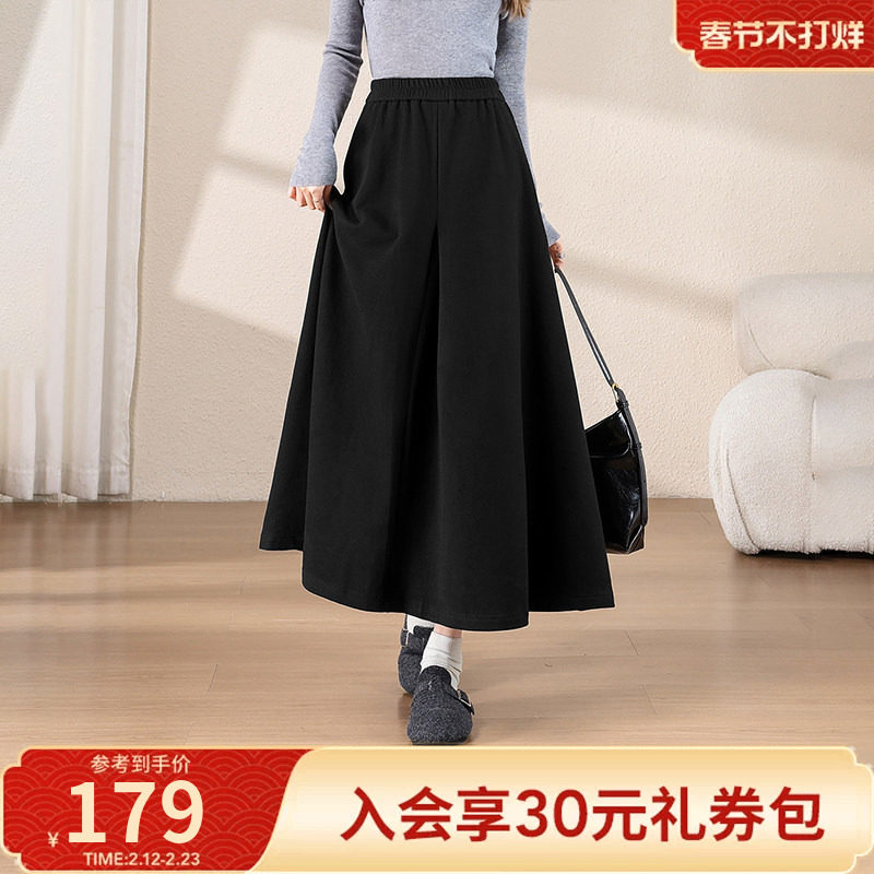 热风女士含绵羊毛垂感大摆优雅气质中长半裙秋冬女款加厚保暖裙子