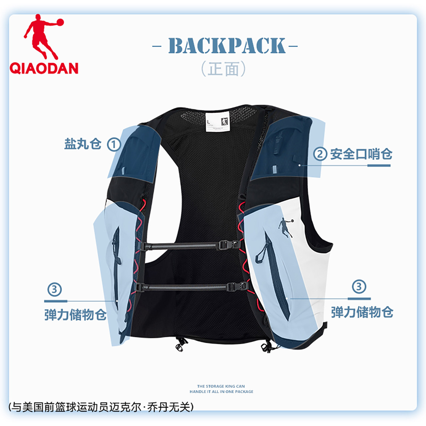 乔丹越野跑步马夹马拉松户外专业徒步登山轻量多功能双肩包马甲男