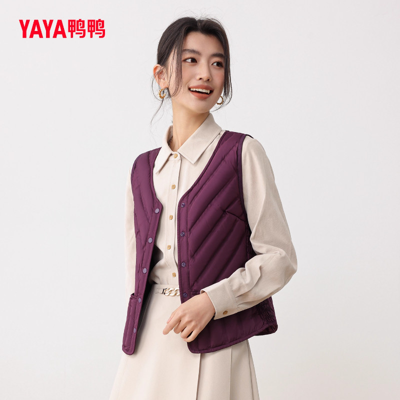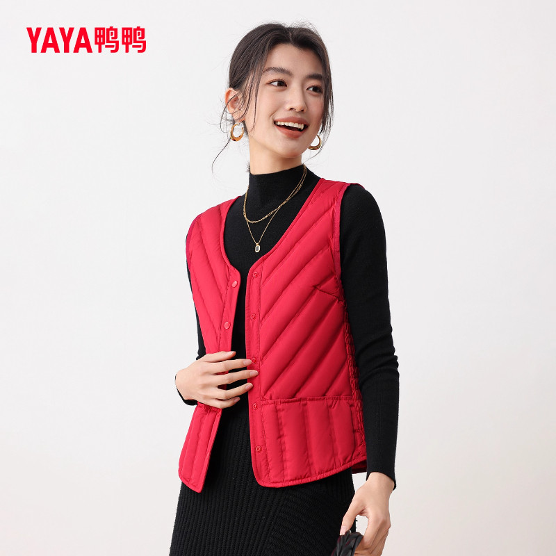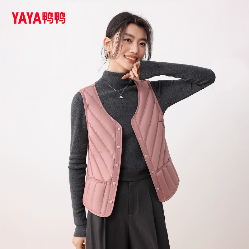 鸭鸭轻薄羽绒服马甲女秋冬季V领基础修身背心内胆鸭绒马夹短外套