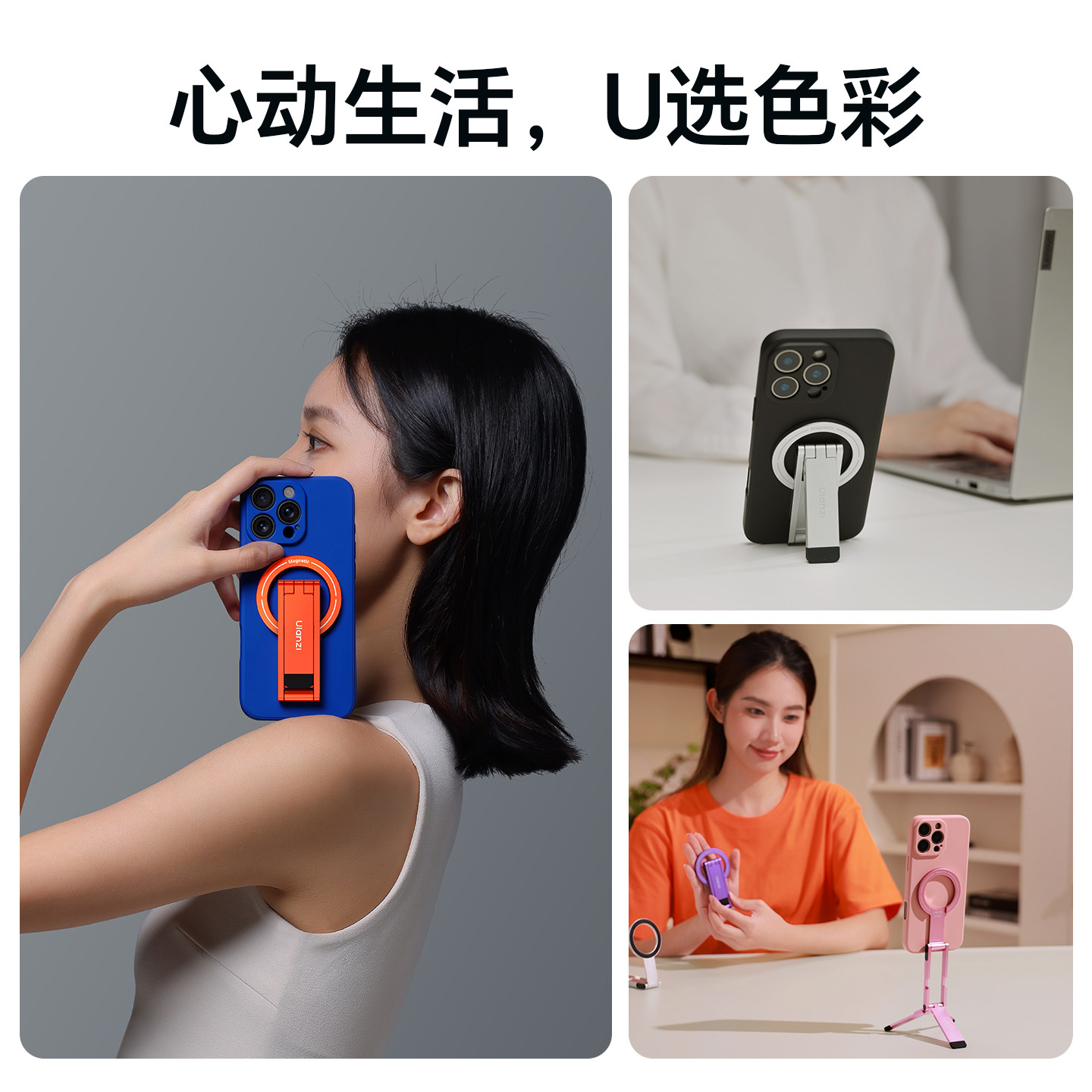 Ulanzi优篮子MA60口袋磁吸手机支架magsafe迷你自拍杆适用iPhone苹果17安卓通用手持便携拍照拍摄桌面支撑架