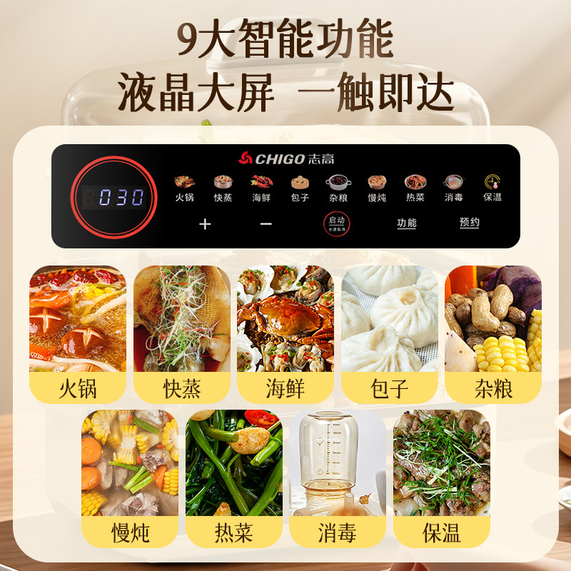 志高电蒸锅多功能家用大容量多层蒸煮炖一体早餐机智能电蒸箱厨房