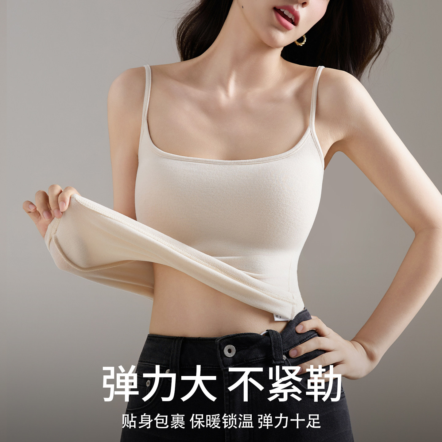 磨毛保暖背心女2025冬新款带胸垫一体无痕吊带打底内衣加绒加厚