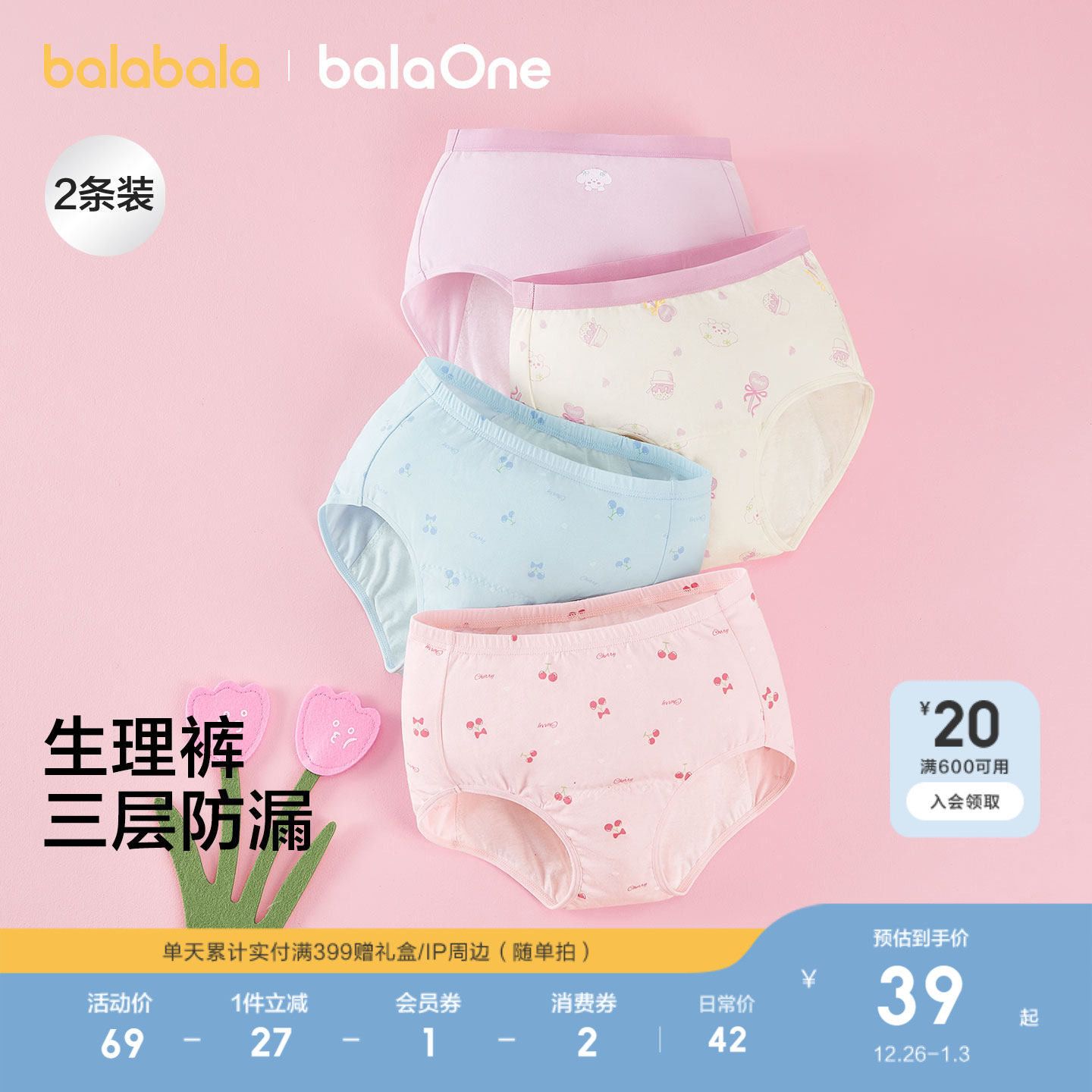 巴拉巴拉女童内裤儿童三角短裤中大童生理裤不夹PP2条装抗菌发育