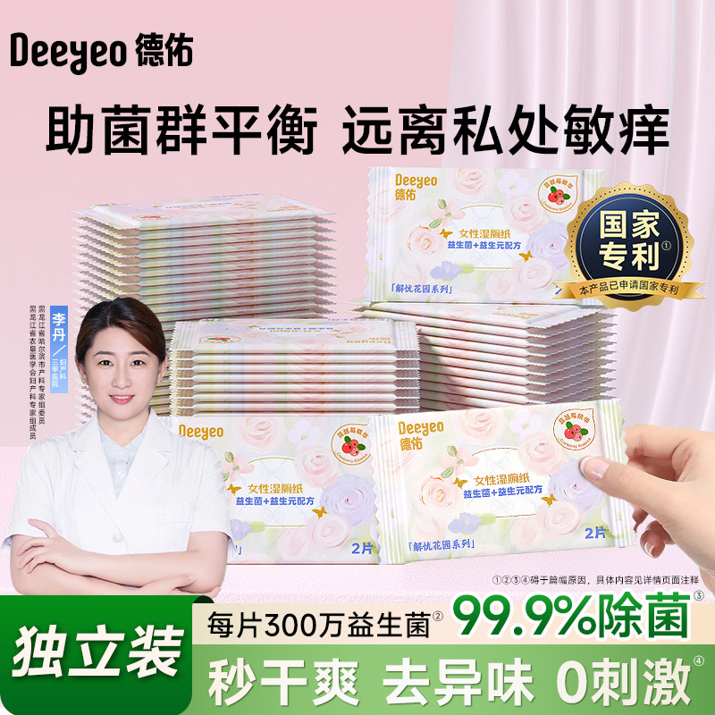 德佑益生菌湿厕纸便携小包女士专用独立装孕妇经期事清洁私处湿巾