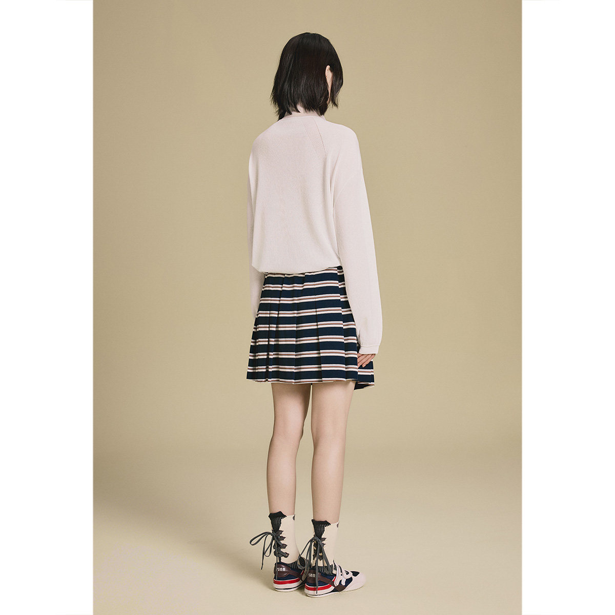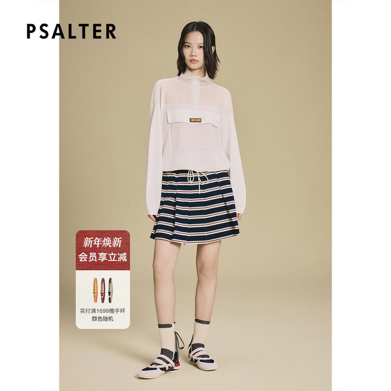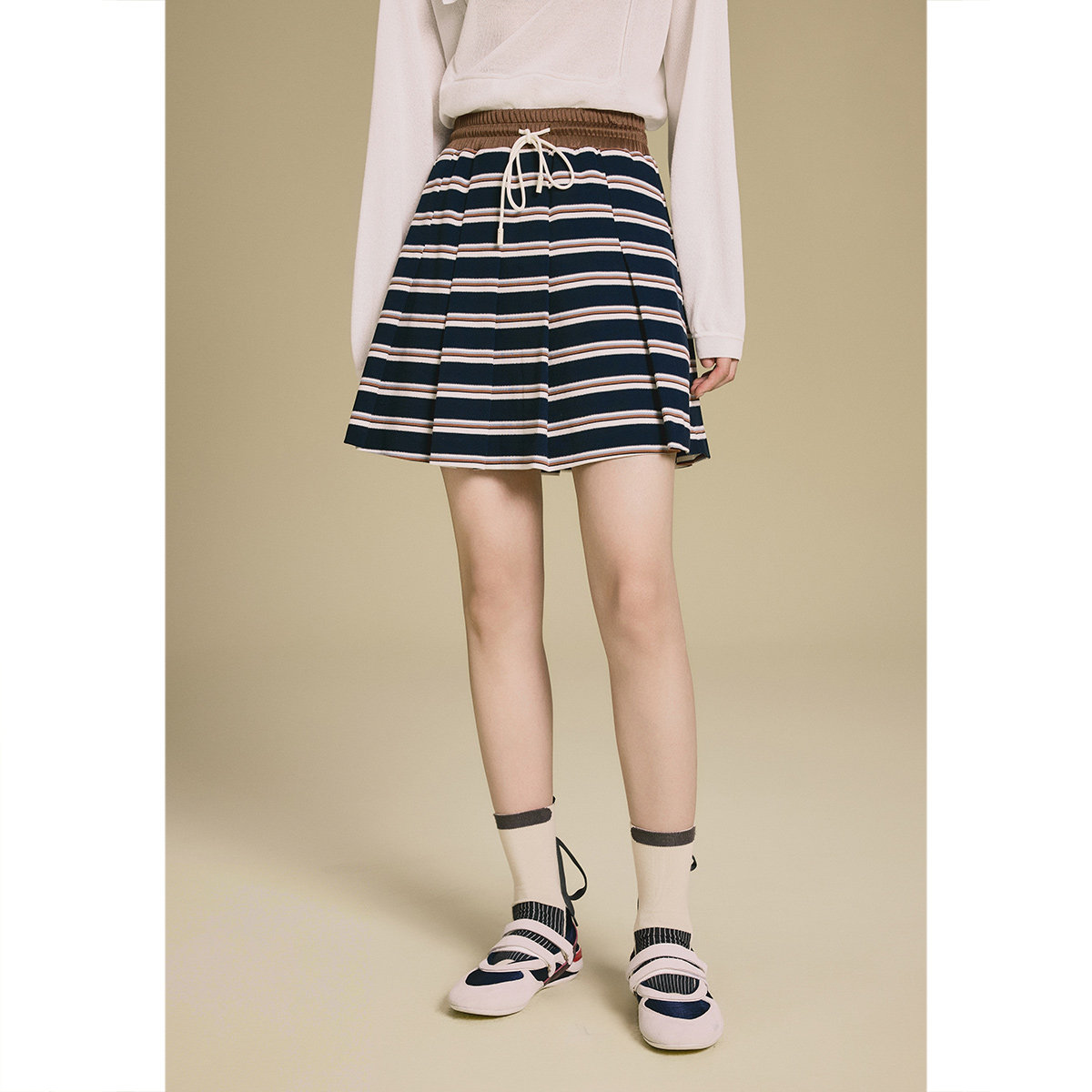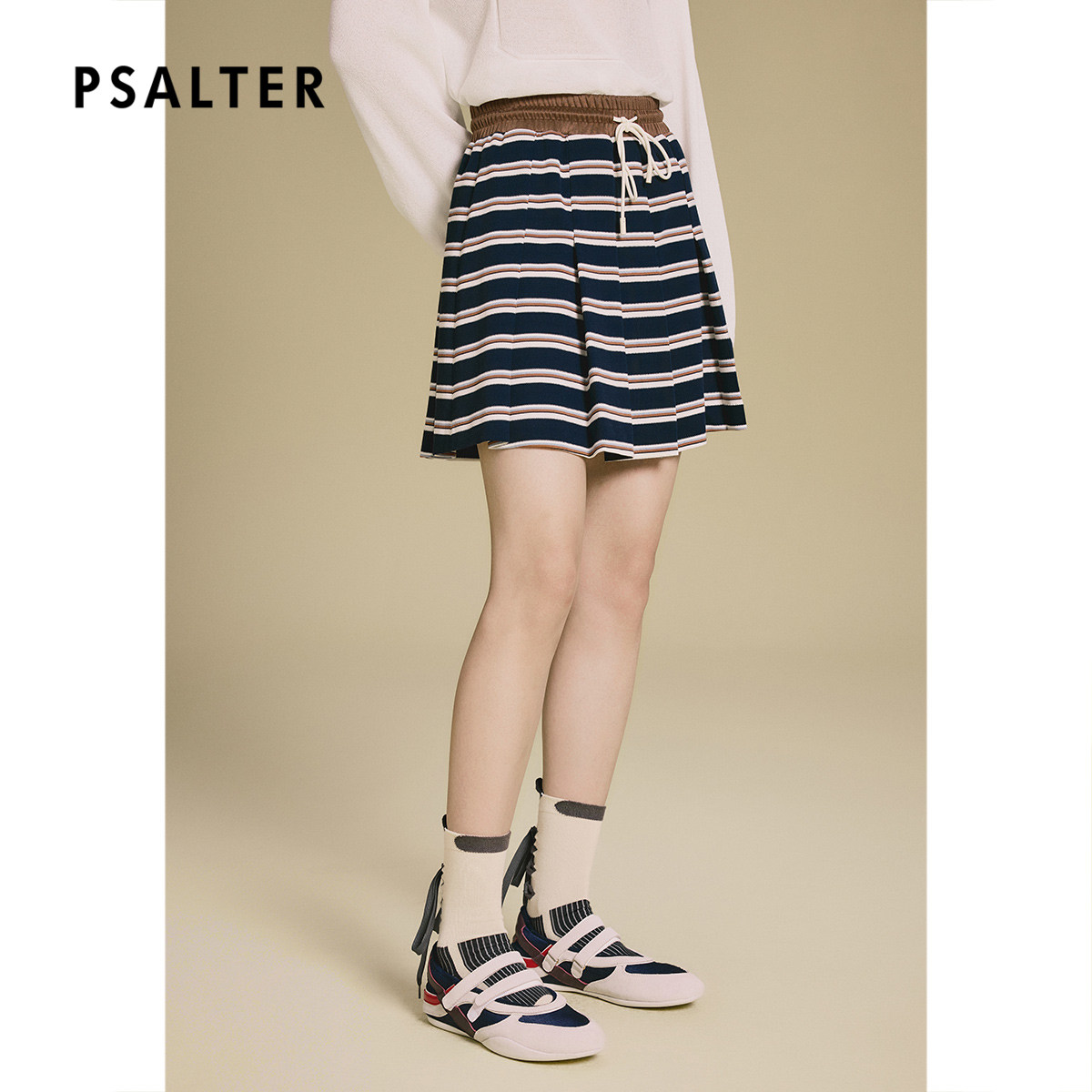 PSALTER诗篇海军蓝条纹A型抽绳系带百褶裙裤2025秋季新款
