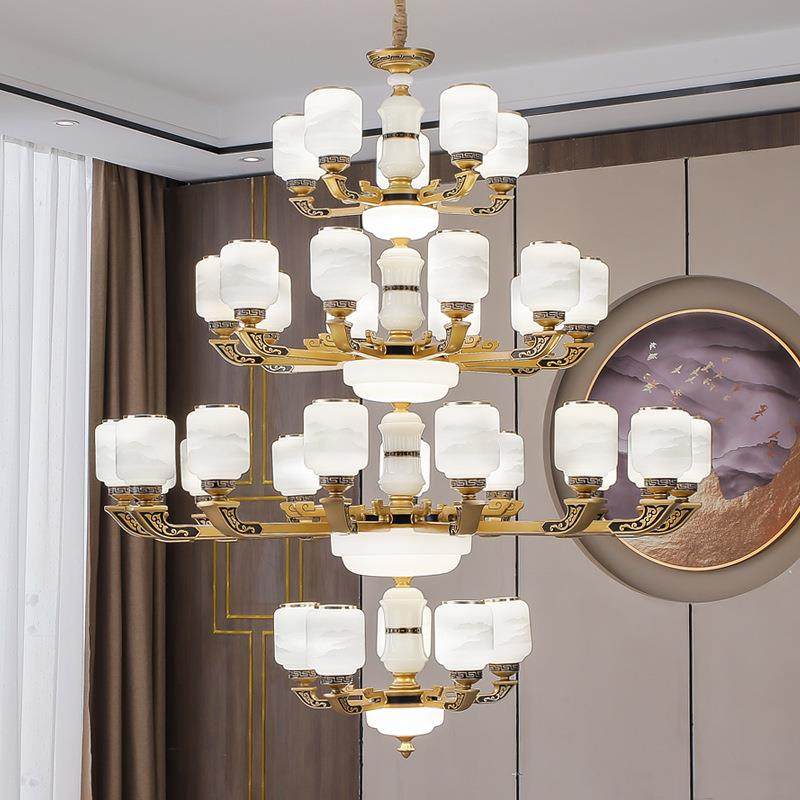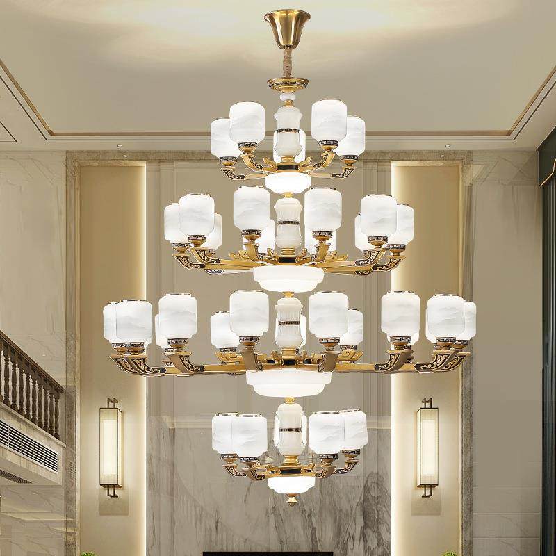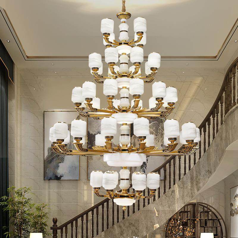 新中式复式楼大吊灯别墅楼中楼客厅灯中空三层大厅大灯厅灯楼梯长