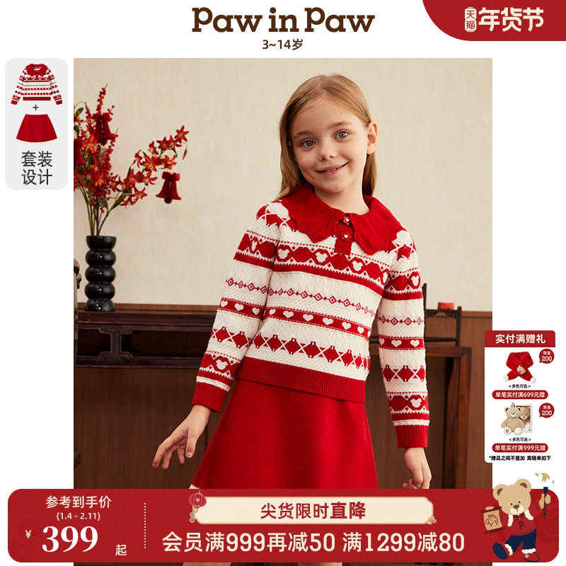 【新年系列】PawinPaw卡通小熊童装25年春夏新款女童拜年服套装裙