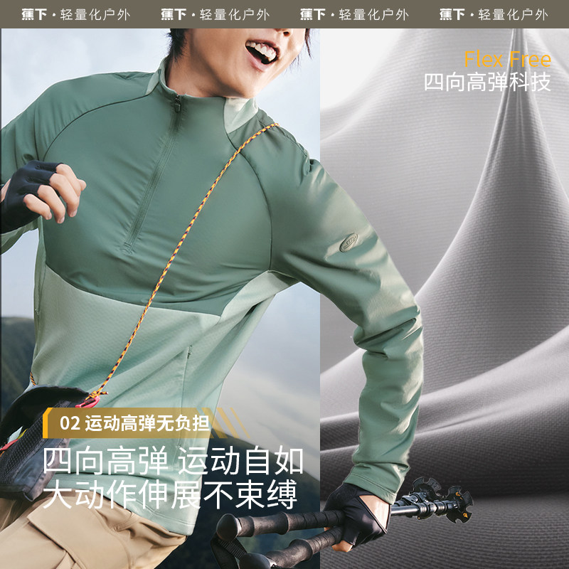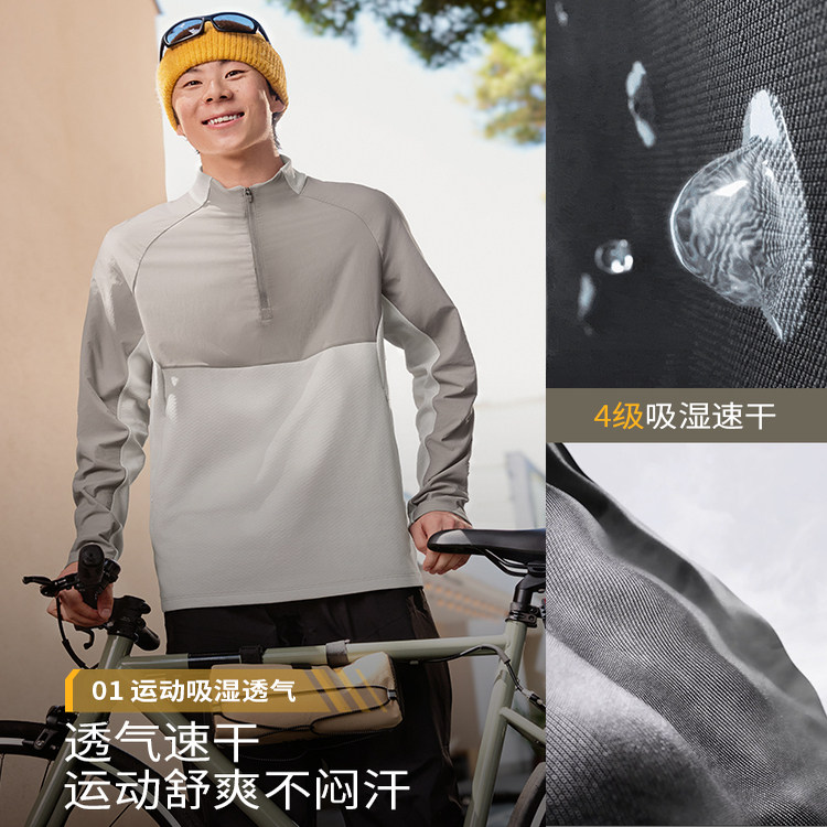 蕉下男士半拉链防风长袖T恤WP94024秋季保暖打底衫排汗透气上衣
