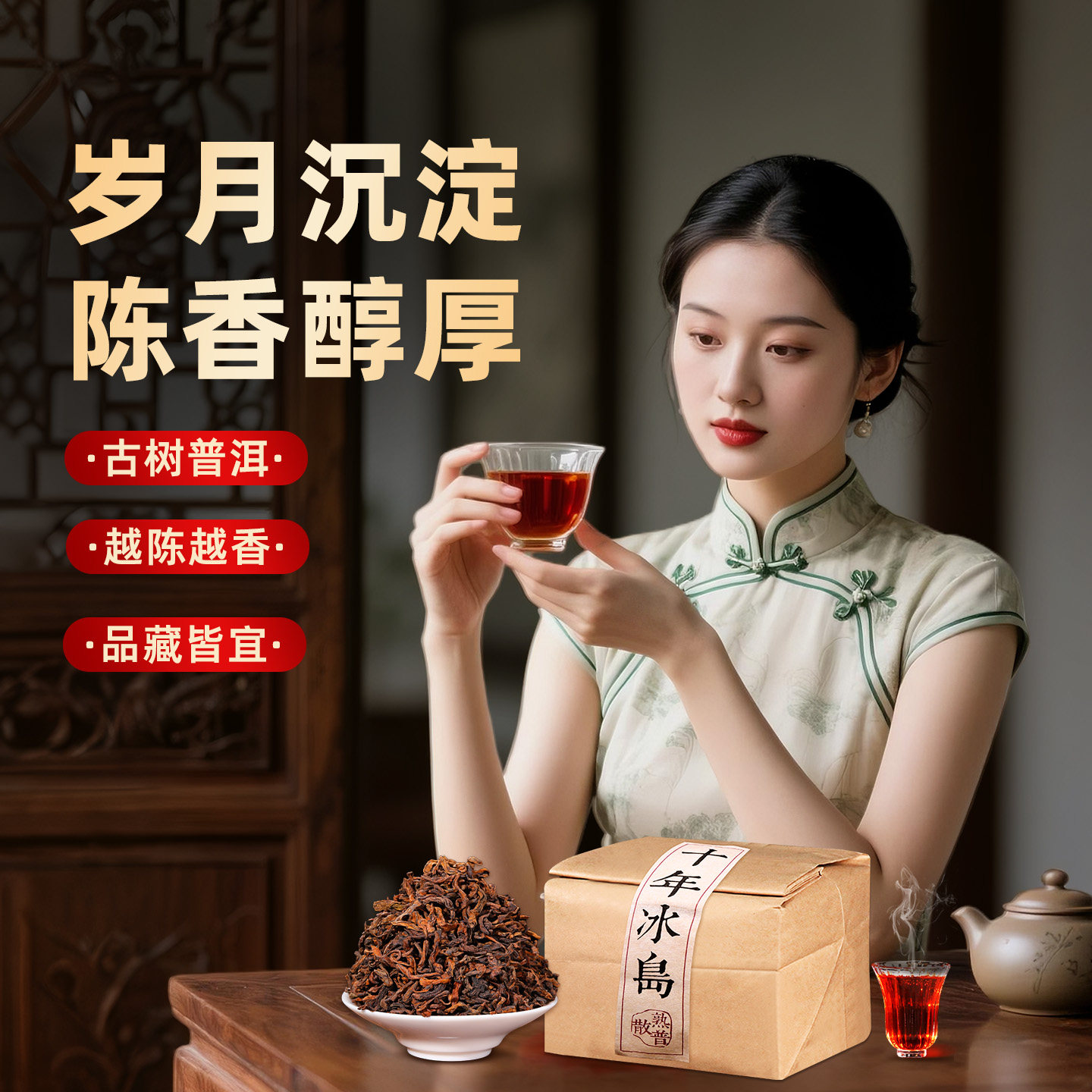 十年冰岛普洱茶熟茶散茶叶云南勐海古树宫廷金芽老料熟普口粮茶叶