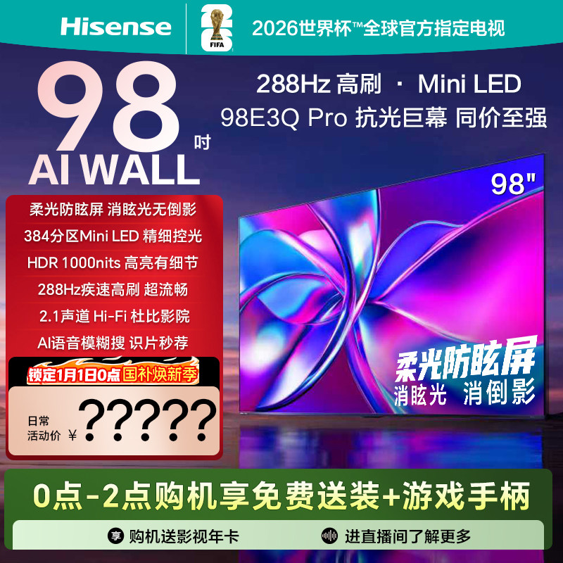 海信电视E3Q Pro 98英寸 高刷Miniled 以旧换新 世俱杯官方电视机
